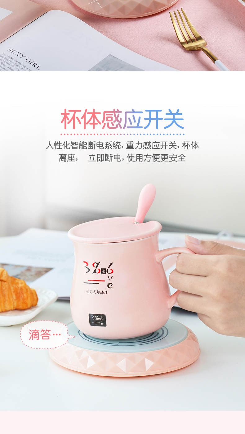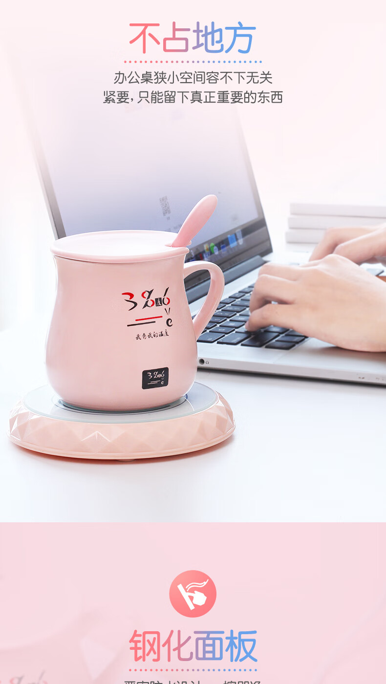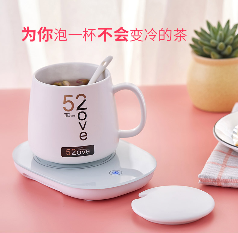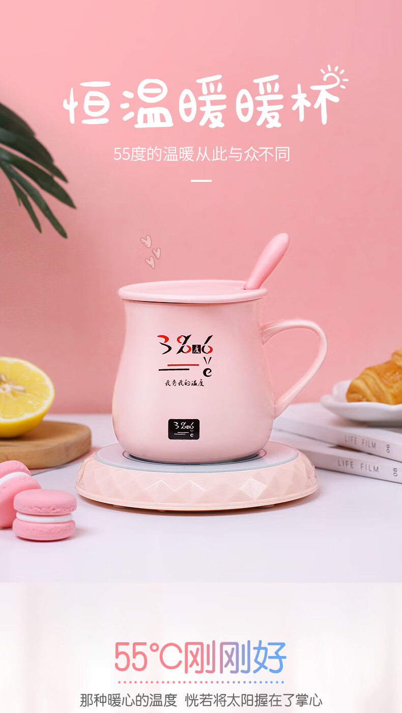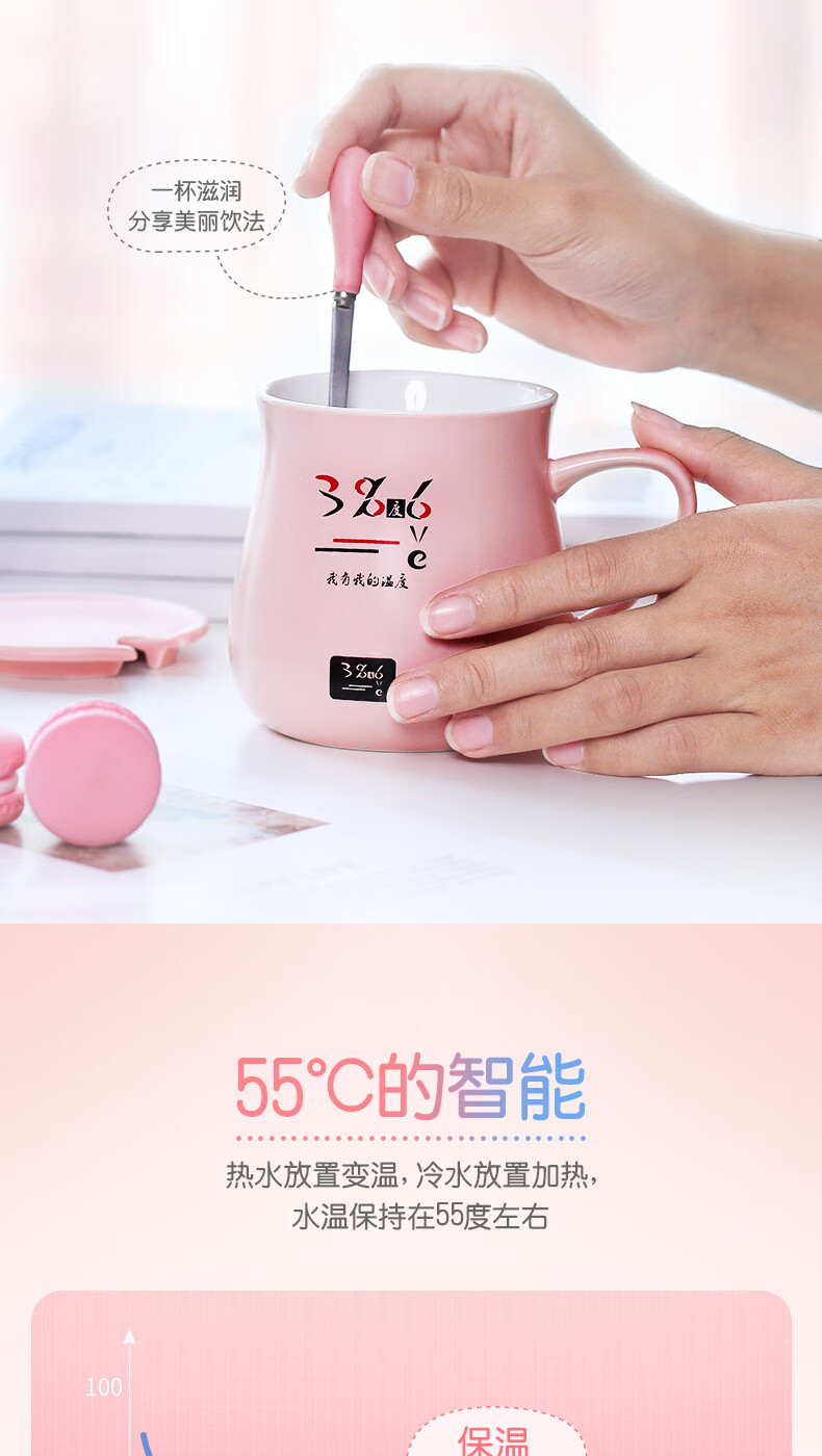 麦卓 55度暖暖杯养生杯恒温杯垫自动保温茶壶底座热牛奶加热器家用电热水杯子迷你养生杯男女生日礼物 520杯(杯垫+杯子+勺子)