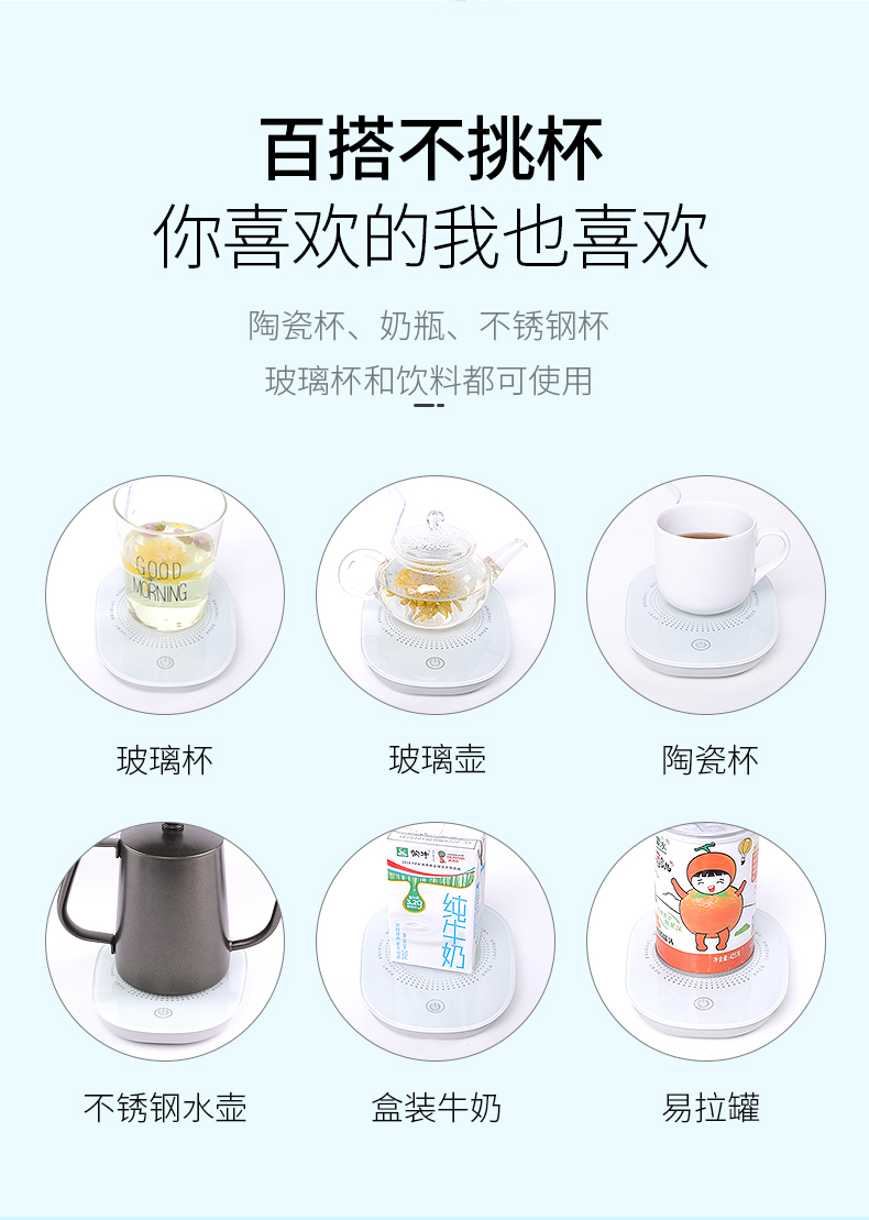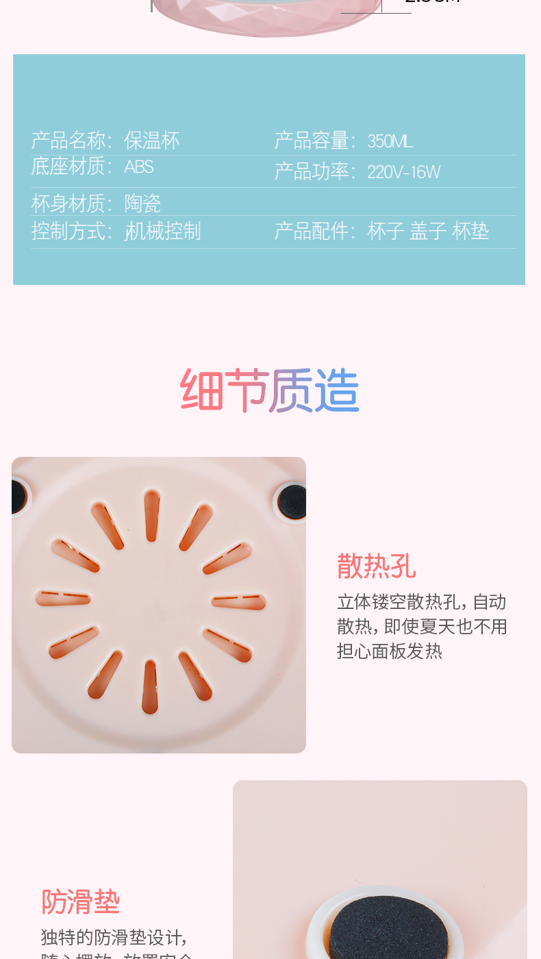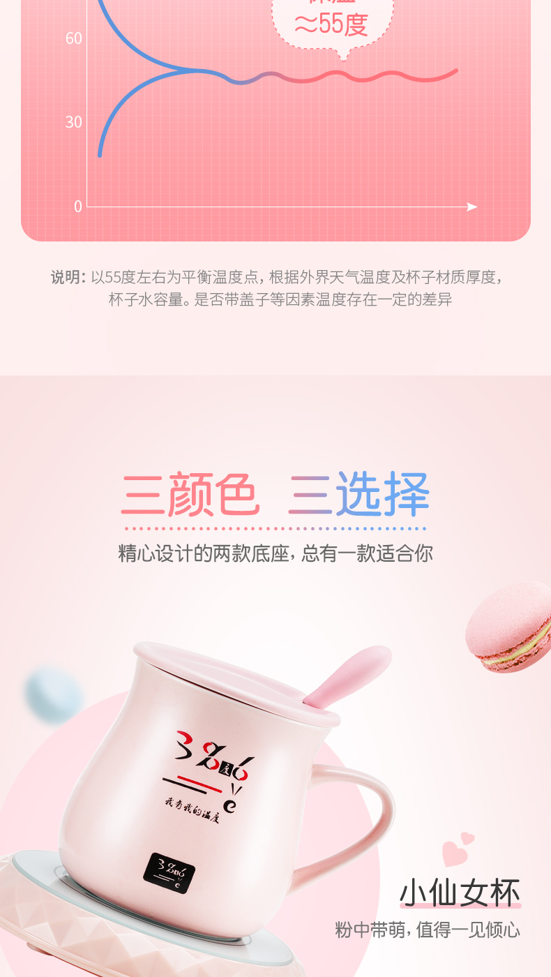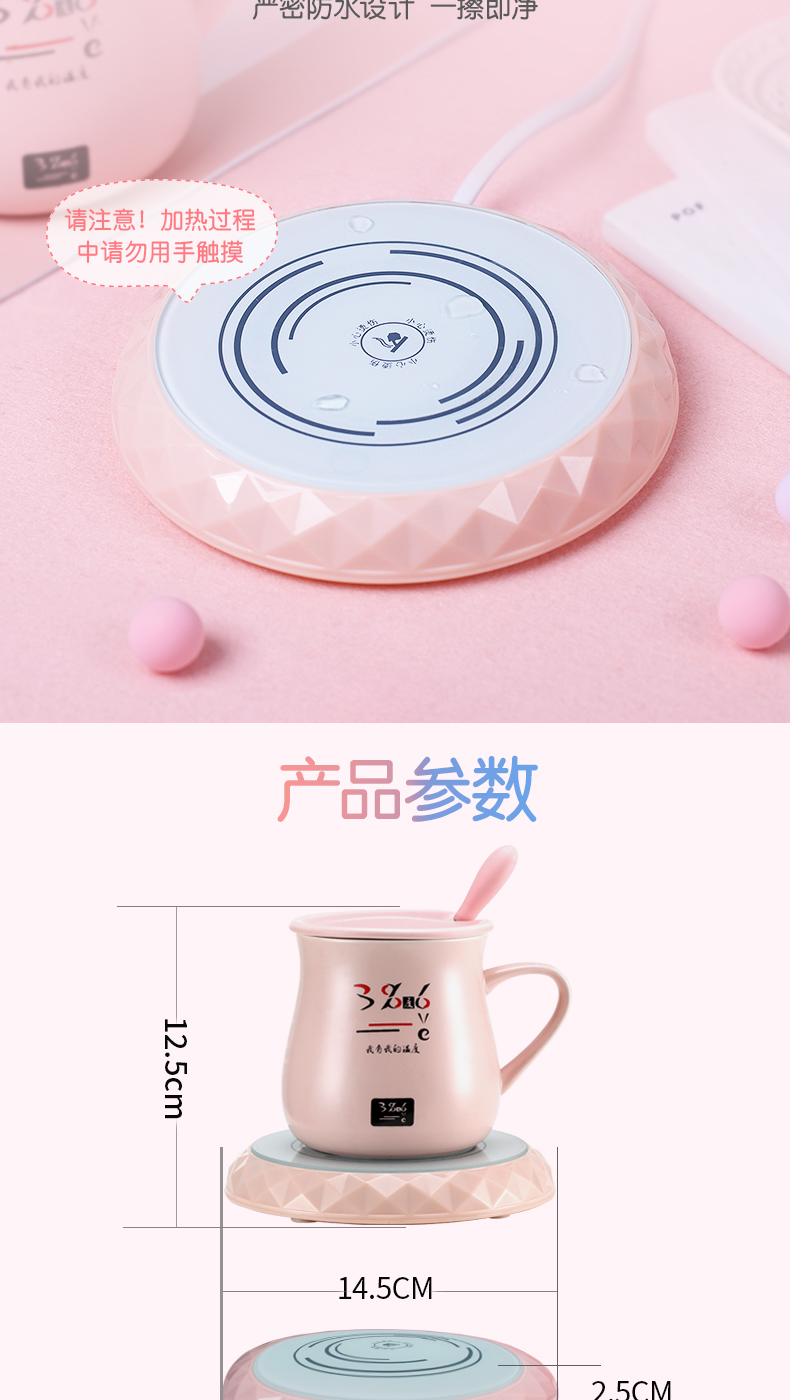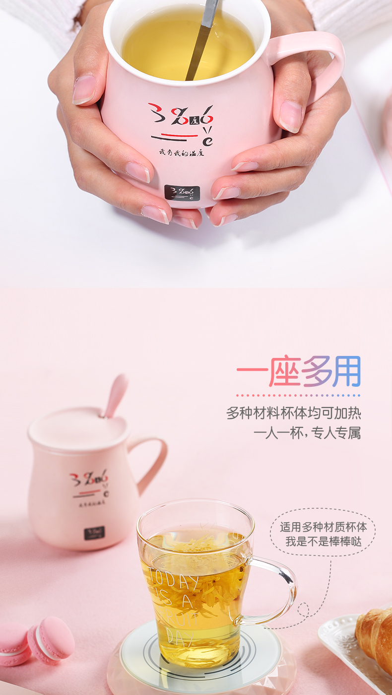 麦卓 55度暖暖杯养生杯恒温杯垫自动保温茶壶底座热牛奶加热器家用电热水杯子迷你养生杯男女生日礼物 520杯(杯垫+杯子+勺子)