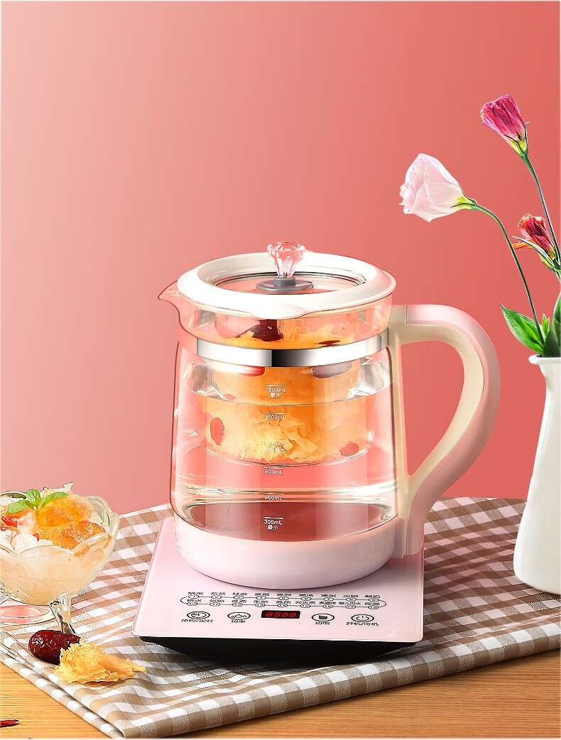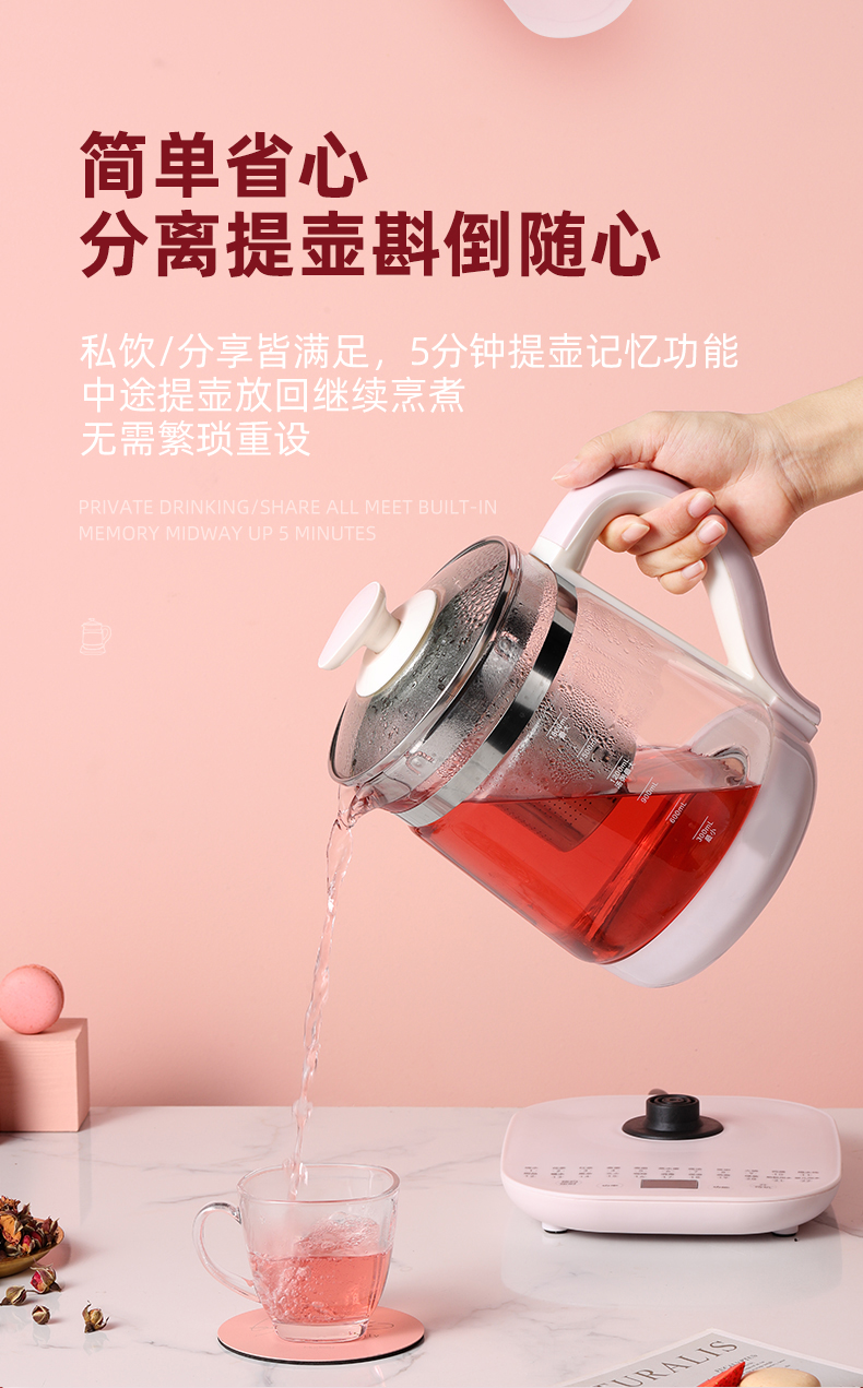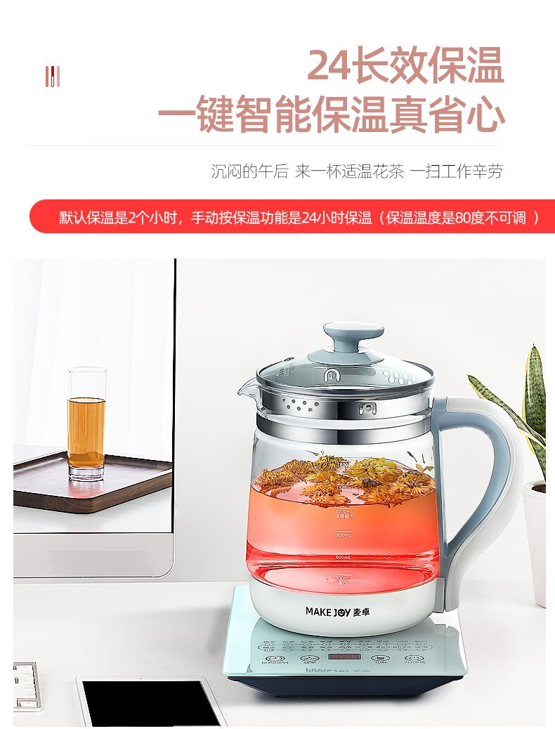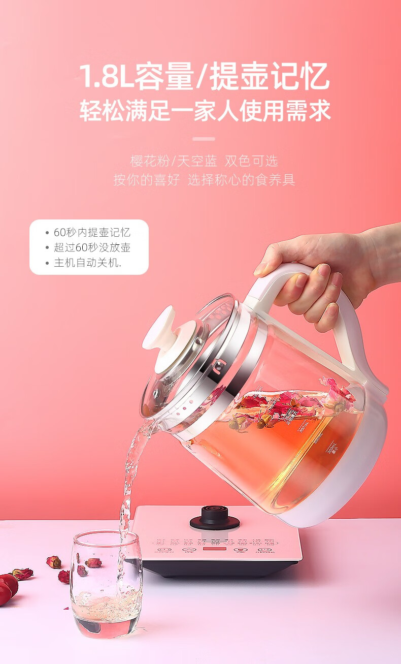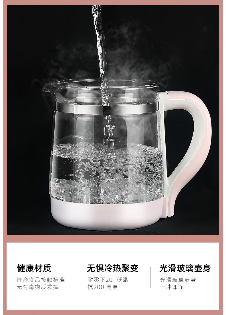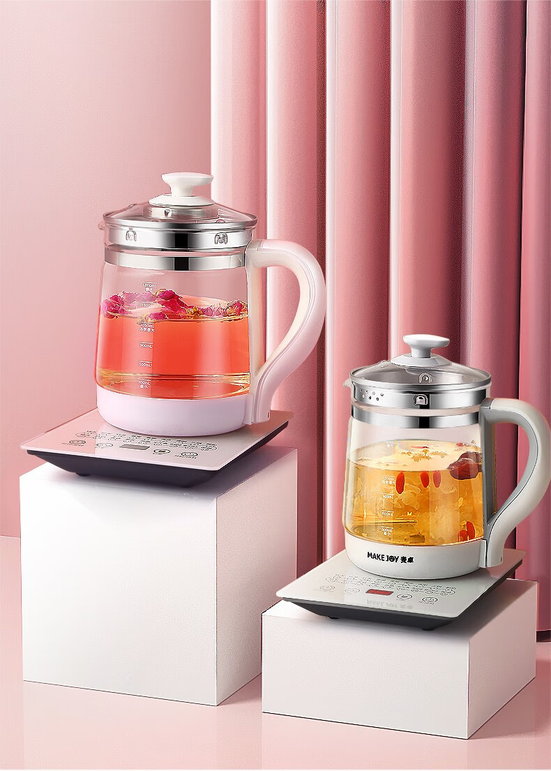 麦卓(MAKEJOY)养生壶全自动玻璃加厚电水壶电热水壶烧水壶花茶壶煮茶器办公室煮茶壶煎药壶 B13(粉色)标配