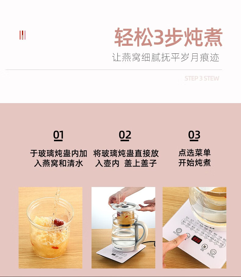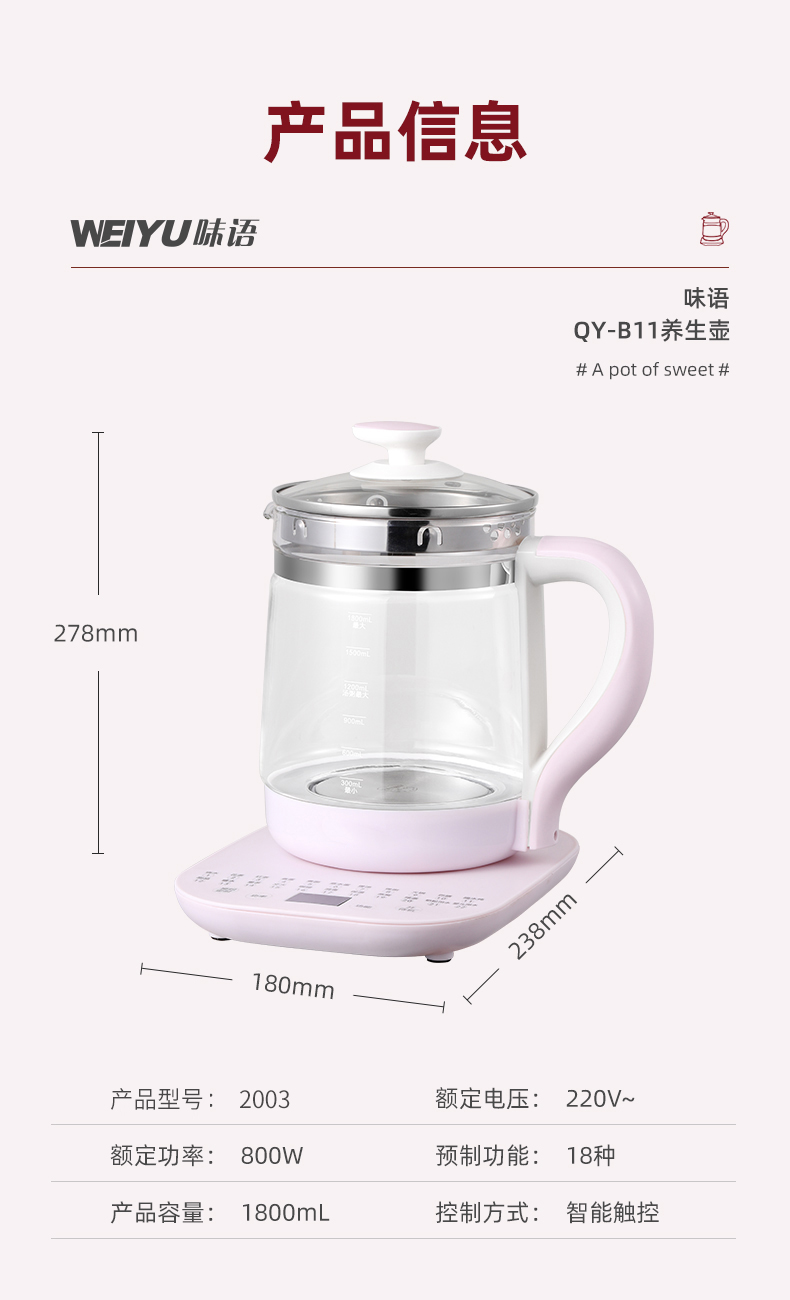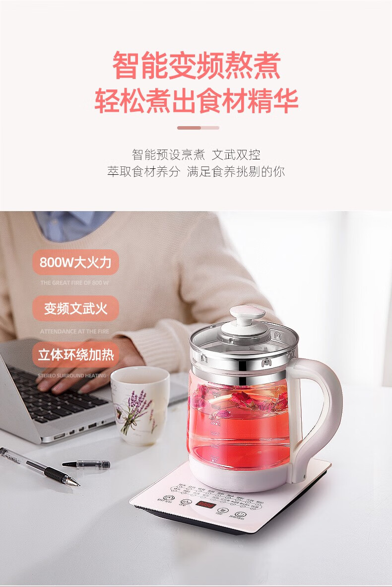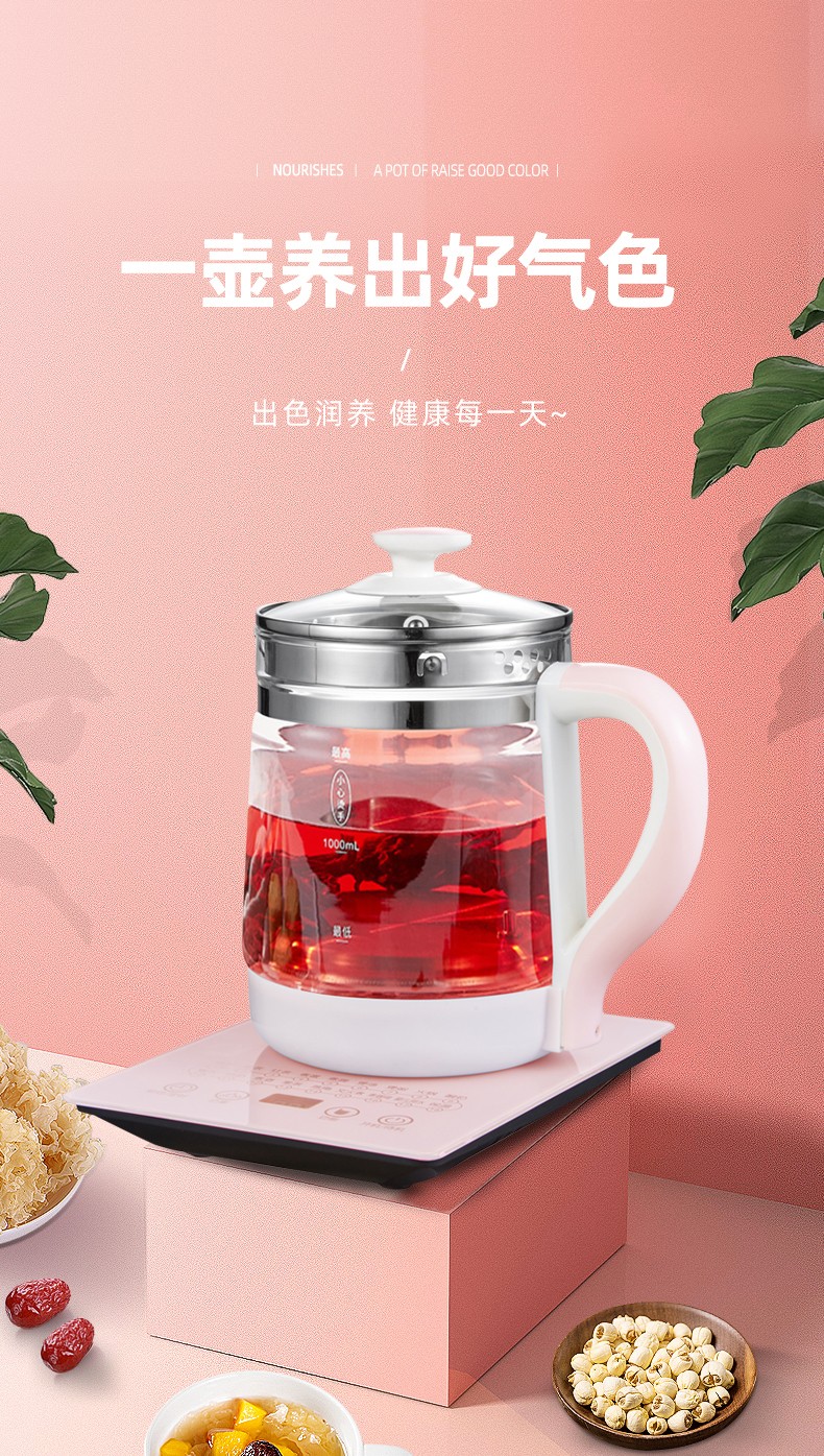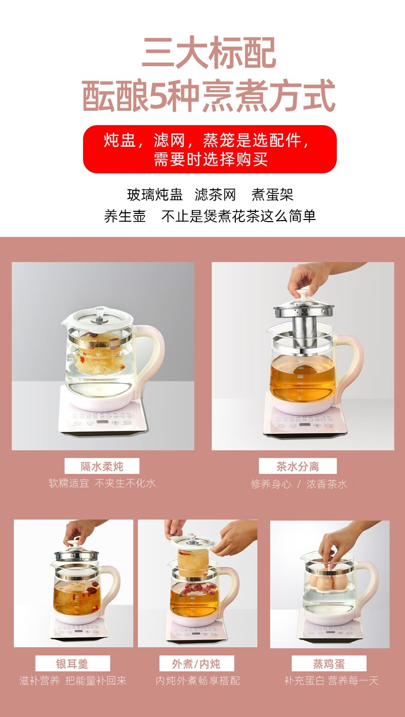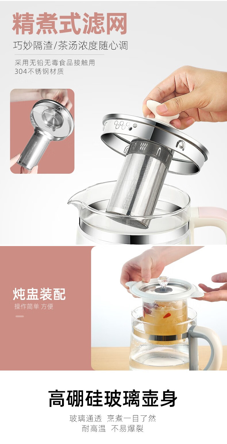 麦卓(MAKEJOY)养生壶全自动玻璃加厚电水壶电热水壶烧水壶花茶壶煮茶器办公室煮茶壶煎药壶 B13(粉色)标配