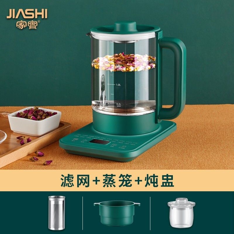 家实 养生壶多功能电热烧水壶 复古绿升级版(滤网+蒸笼+炖盅)