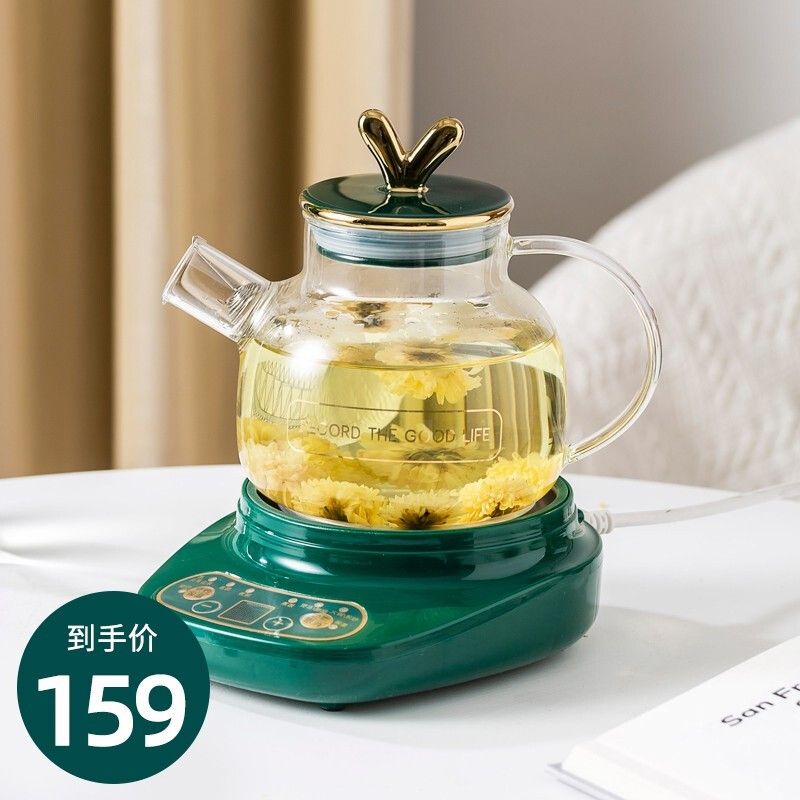 一壶百饮养生壶多功能煮茶器家用办公室花茶壶玻璃煮茶壶迷你电水壶 【祖母绿】1.1玻璃壶D(RTGL)+花茶壶底座A