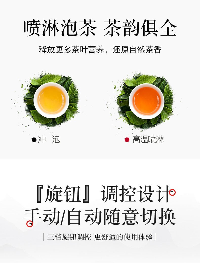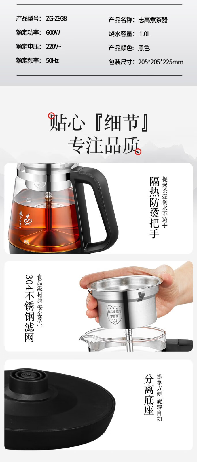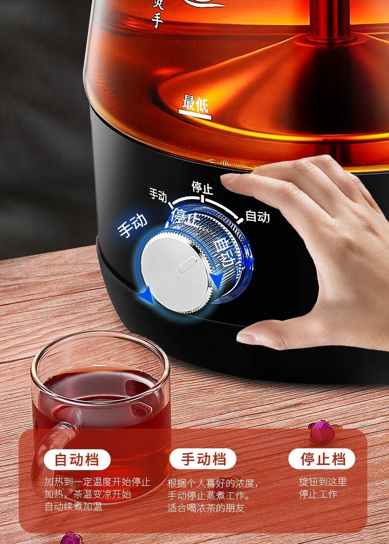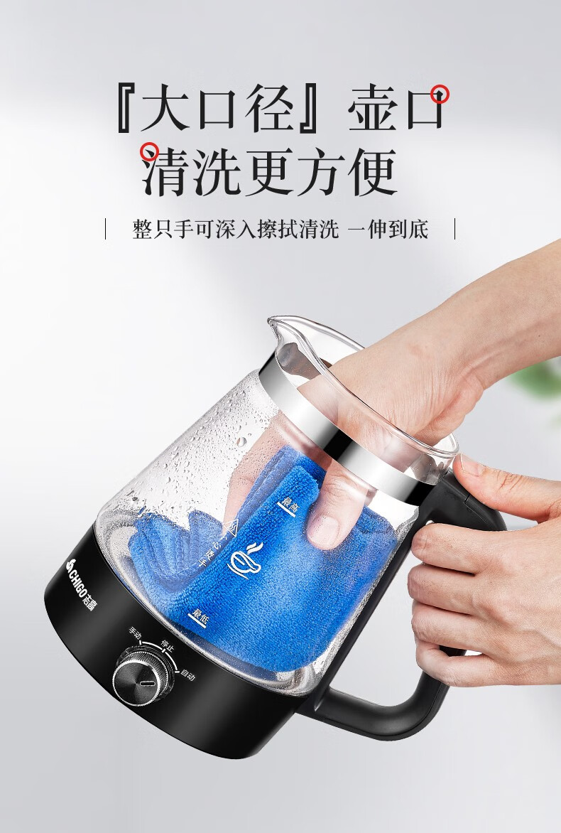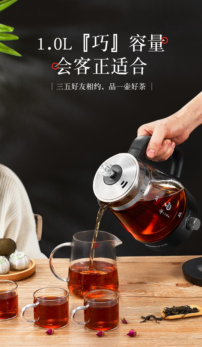志高(CHIGO)蒸汽煮茶器智能喷淋式玻璃电热水壶不锈钢滤网黑茶壶电煮茶壶全自动泡茶养生壶 ZG-Z938黑色旋钮款