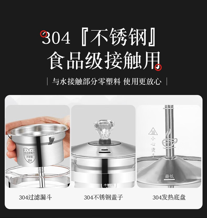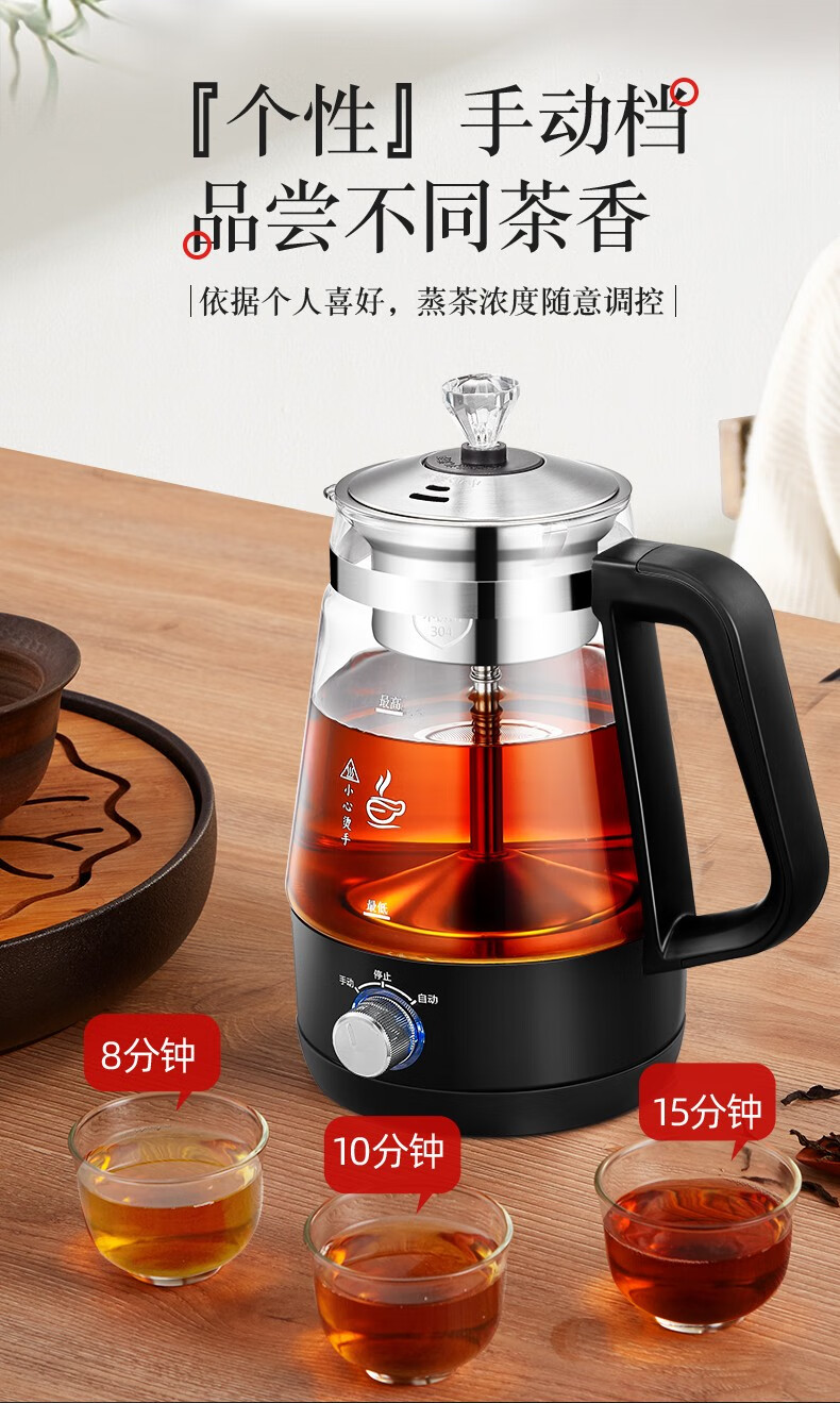 金正(NINTAUS)蒸汽煮茶器黑茶全自动电热水壶家用泡茶机养生壶玻璃壶保温款包钢防烫茶具 黑色