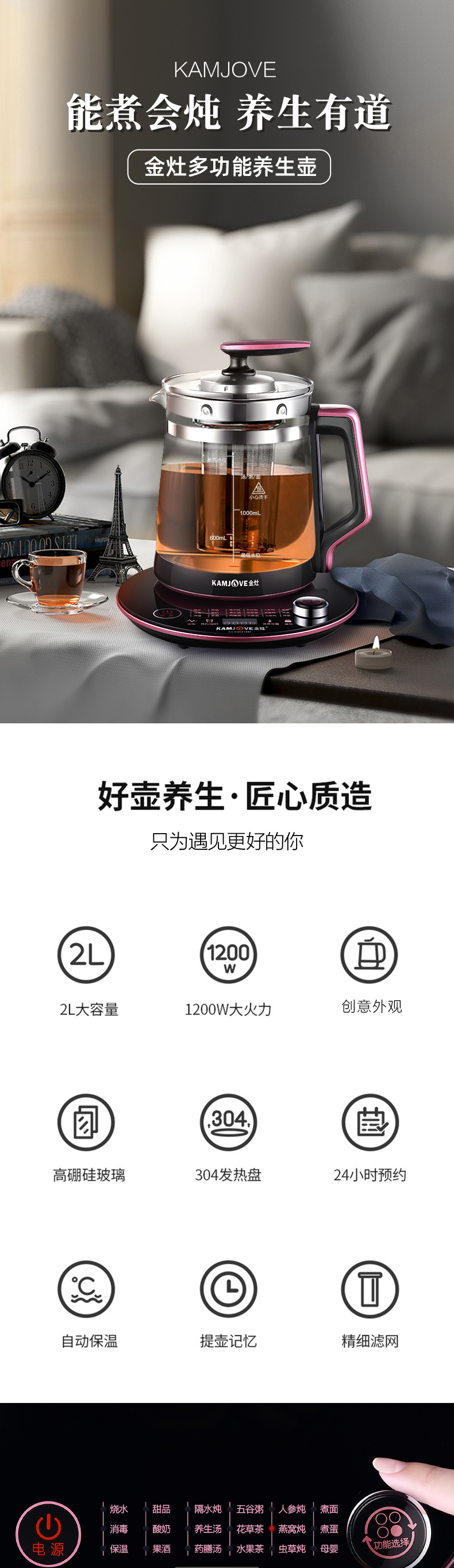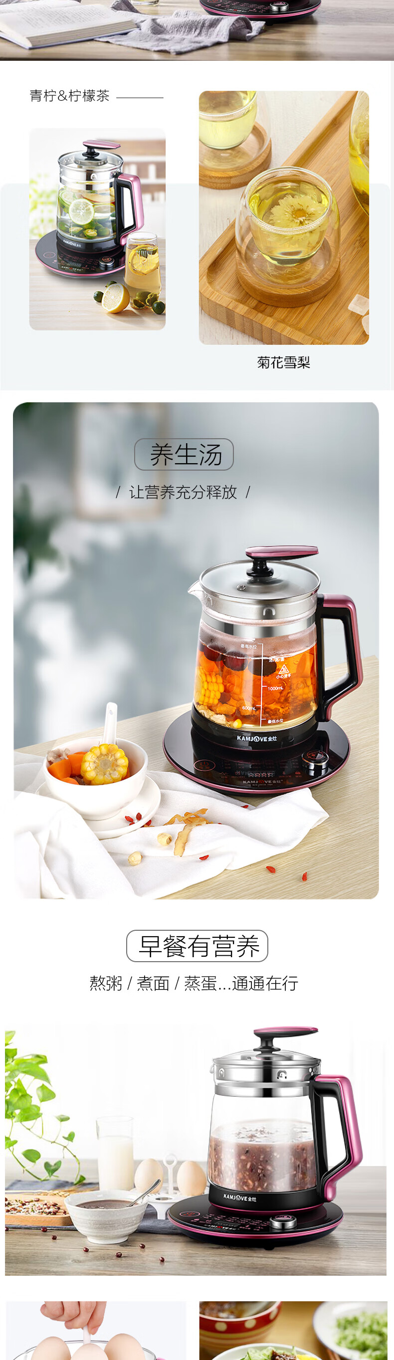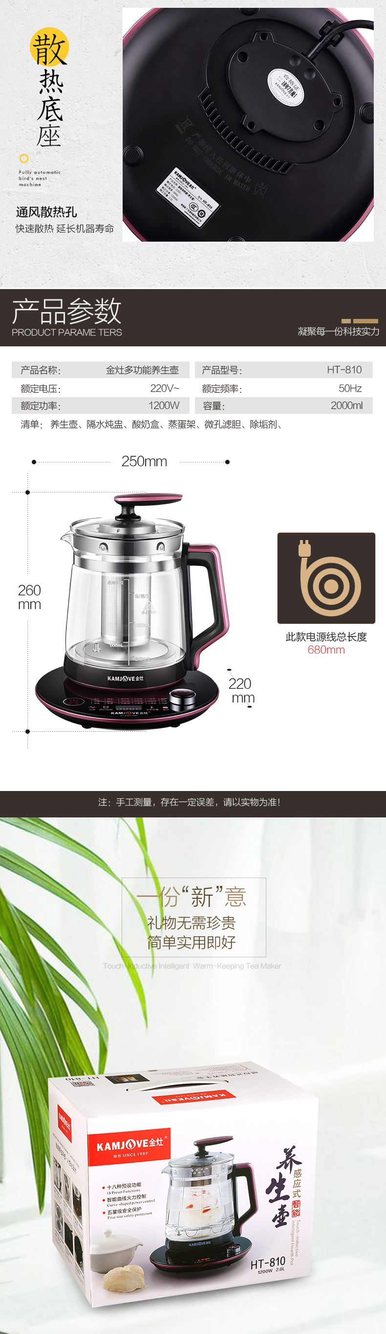 金灶(KAMJOVE)多功能三内胆养生壶煮茶器煎药壶 玻璃 电热水壶花茶壶烧水壶 HT-810养生壶2L