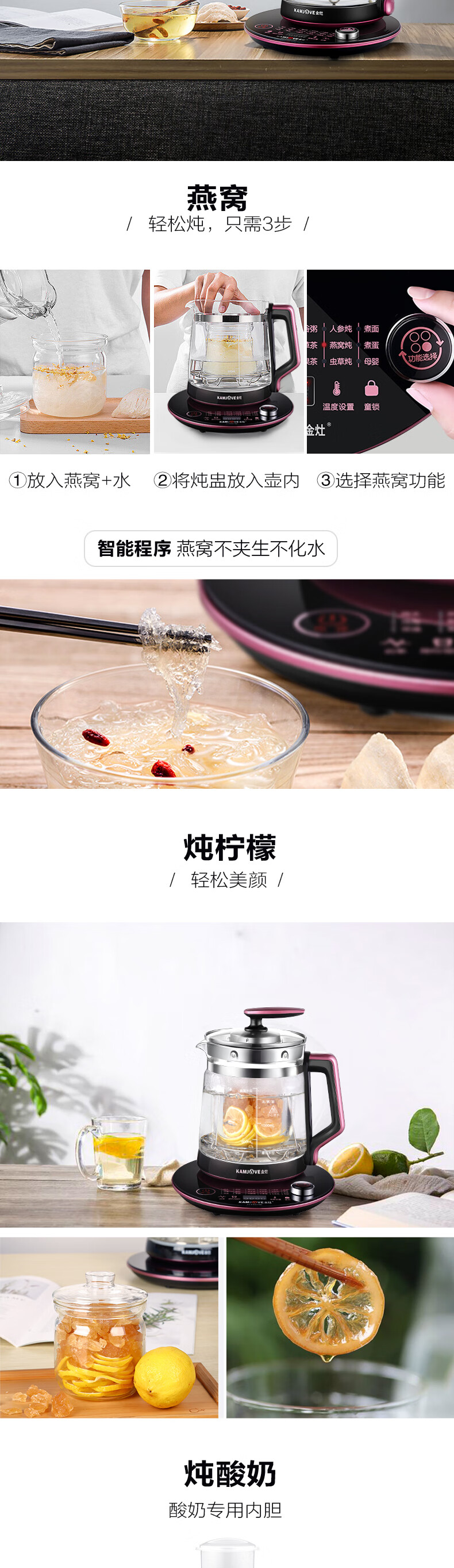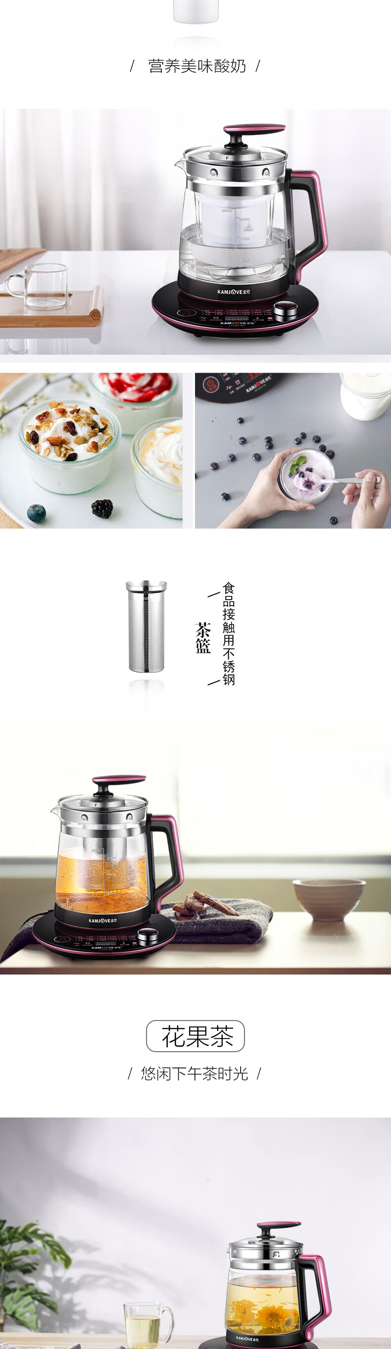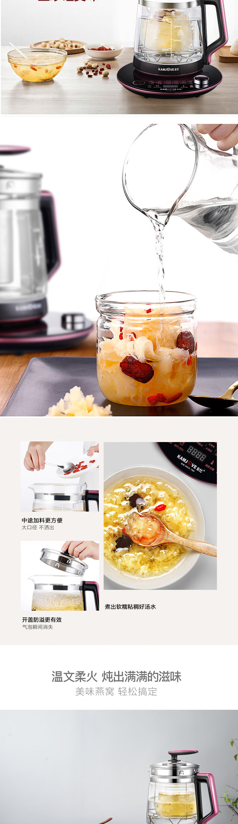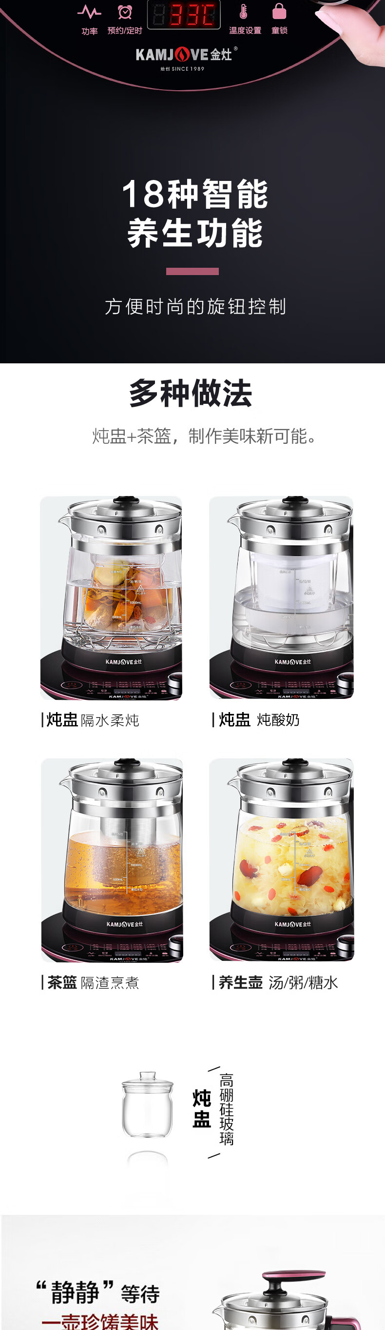 金灶(KAMJOVE)多功能三内胆养生壶煮茶器煎药壶 玻璃 电热水壶花茶壶烧水壶 HT-810养生壶2L