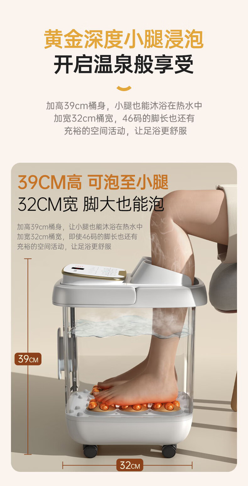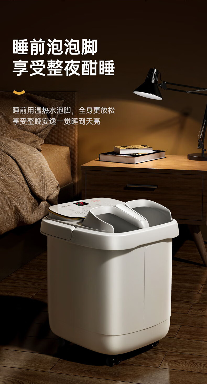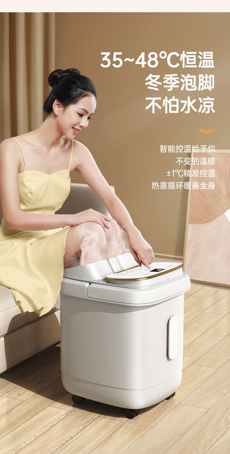 东耐伦泡脚桶足浴盆自动防漏电保护 按摩洗脚盆智能恒温加热泡脚盆脚动按摩洗脚桶送父母送长辈节日礼物 HS-Y3 白色滚轮按摩简易款
