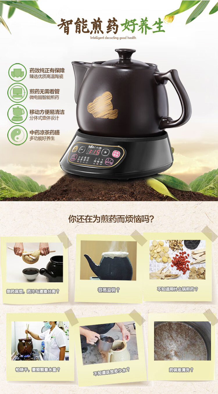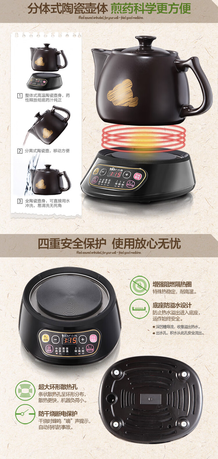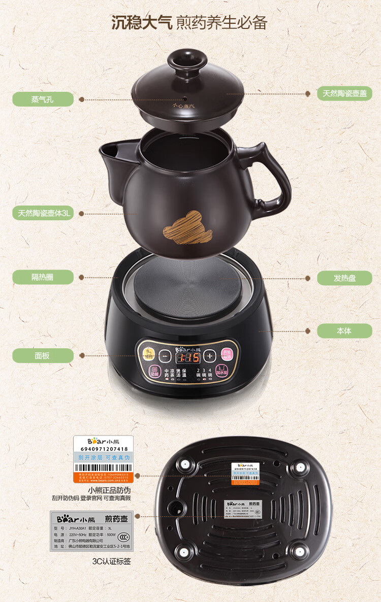 小熊(Bear)煎药壶全自动中药壶养生壶熬药电砂锅家用3L中医药锅煮药煎药罐 JYH-A30A1