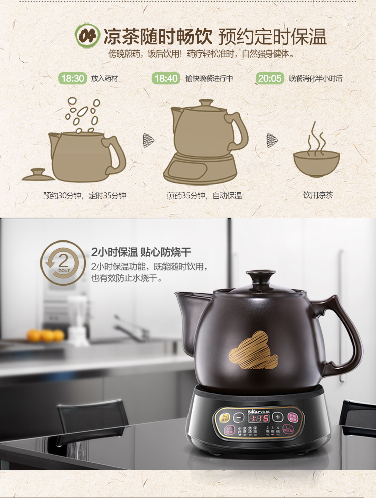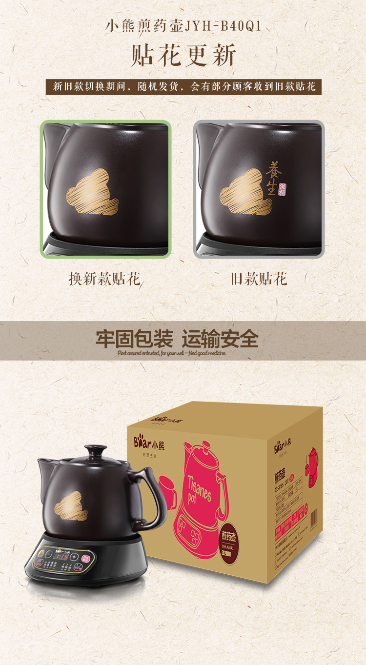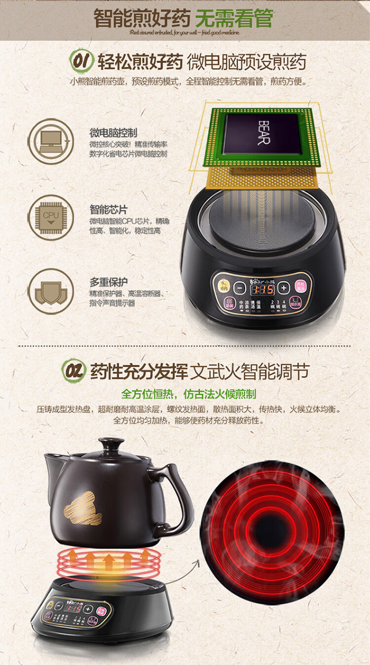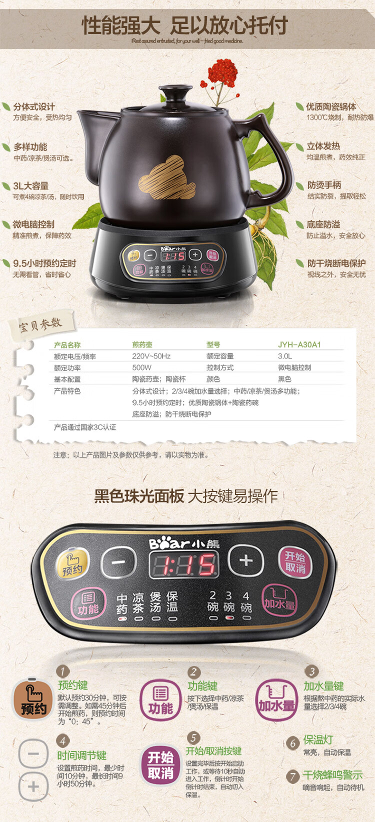 小熊(Bear)煎药壶全自动中药壶养生壶熬药电砂锅家用3L中医药锅煮药煎药罐 JYH-A30A1