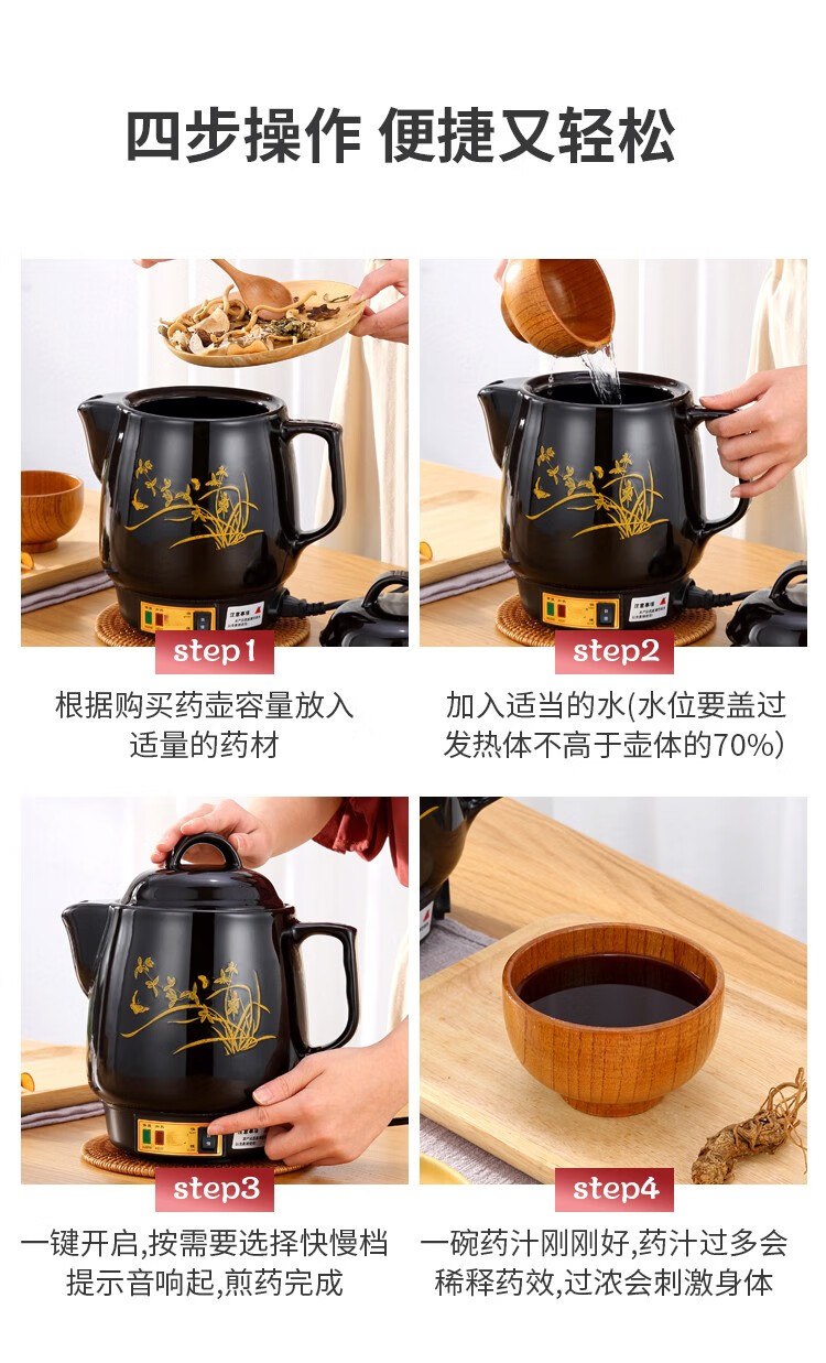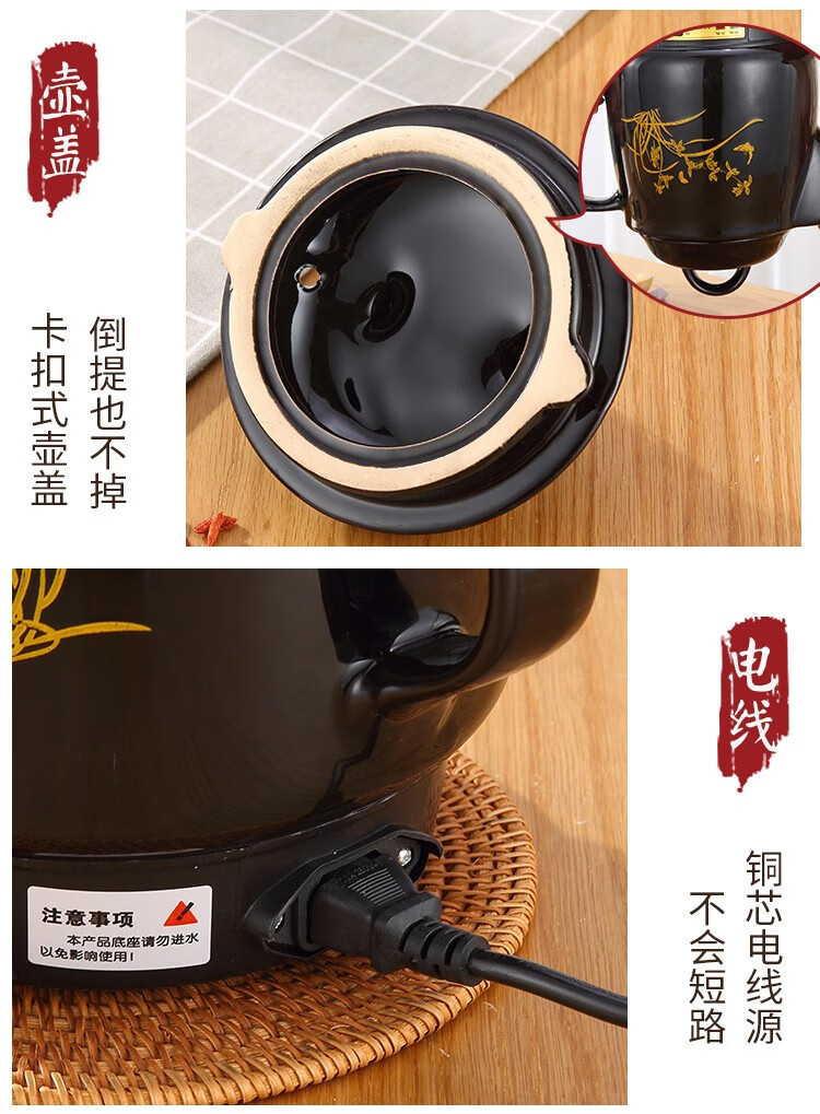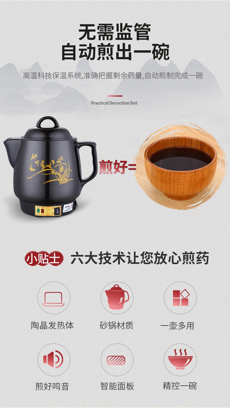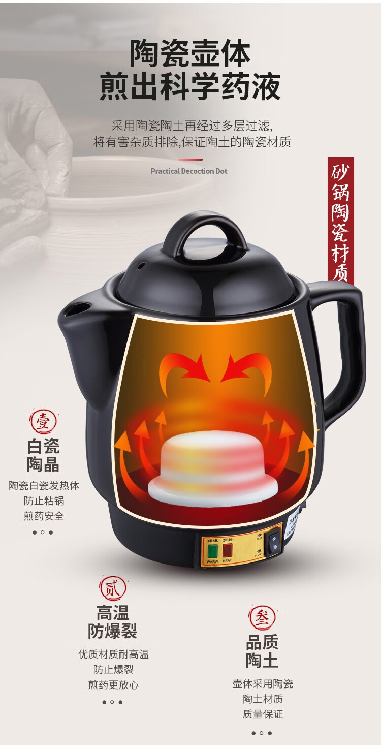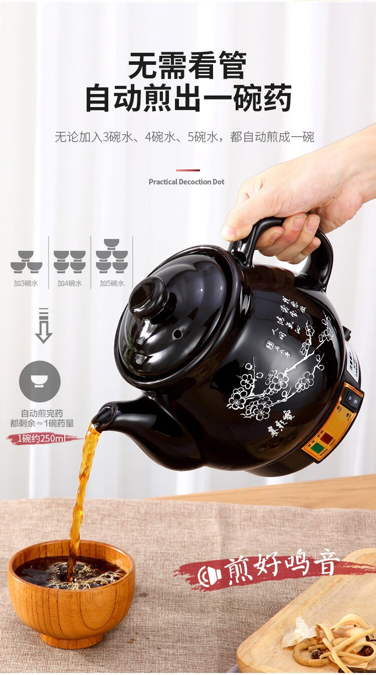 奇家中药煲全自动熬药锅砂锅煎中医壶电煮中药锅药罐煎药壶电药壶一体 陶瓷壶坏白陶晶内胆全自动煎药 3L全自动(黑陶不粘)+鸣音提示