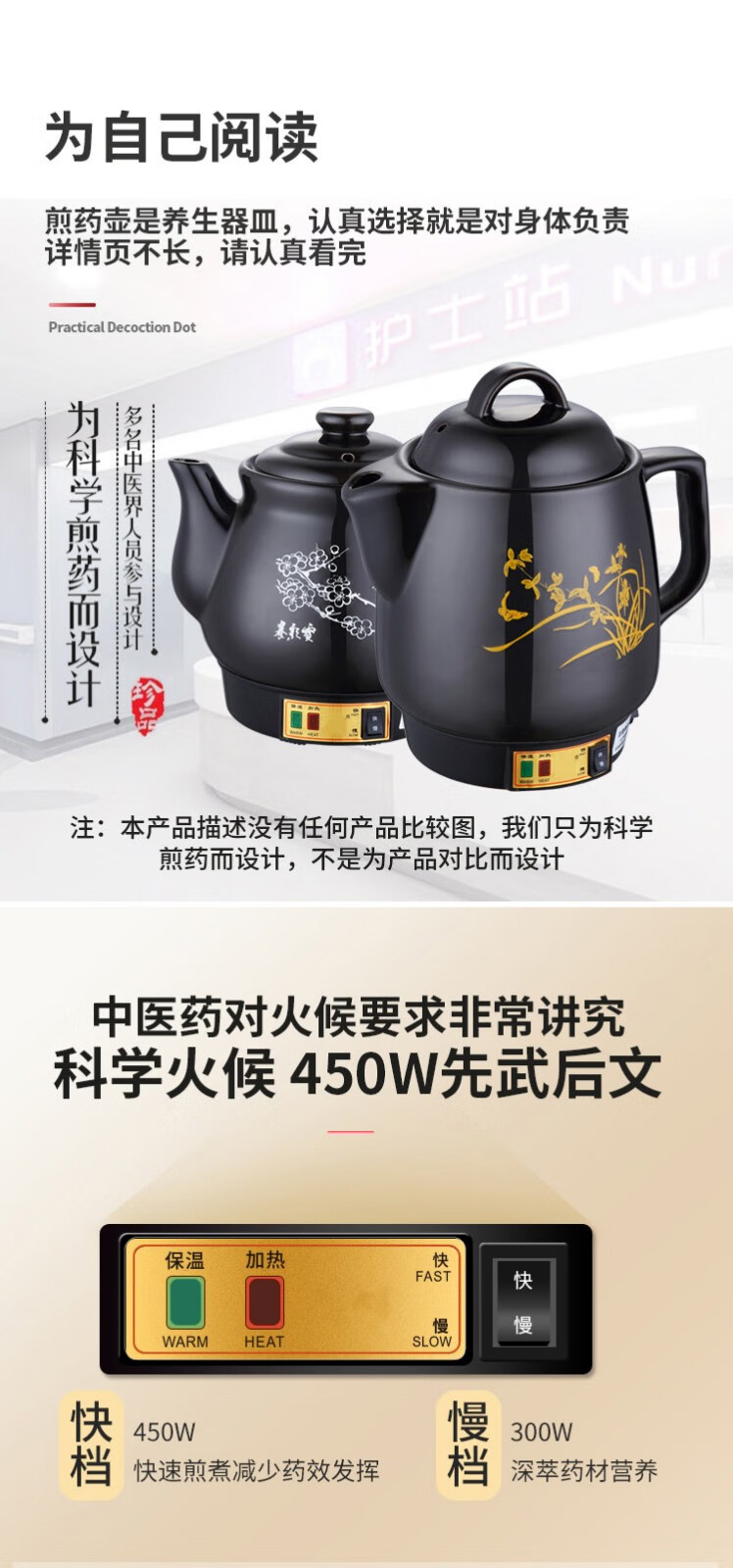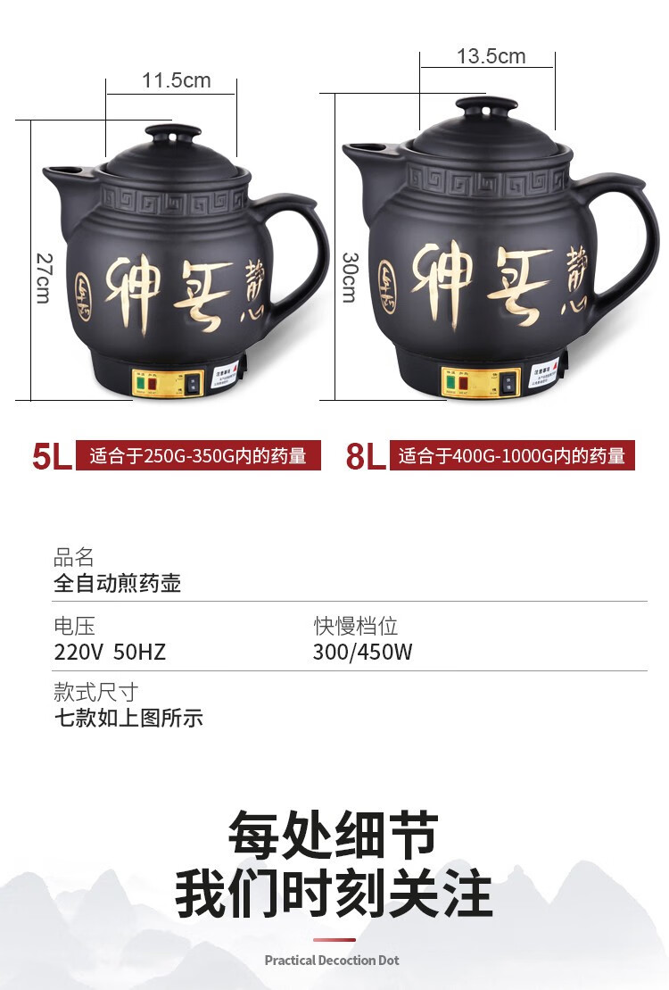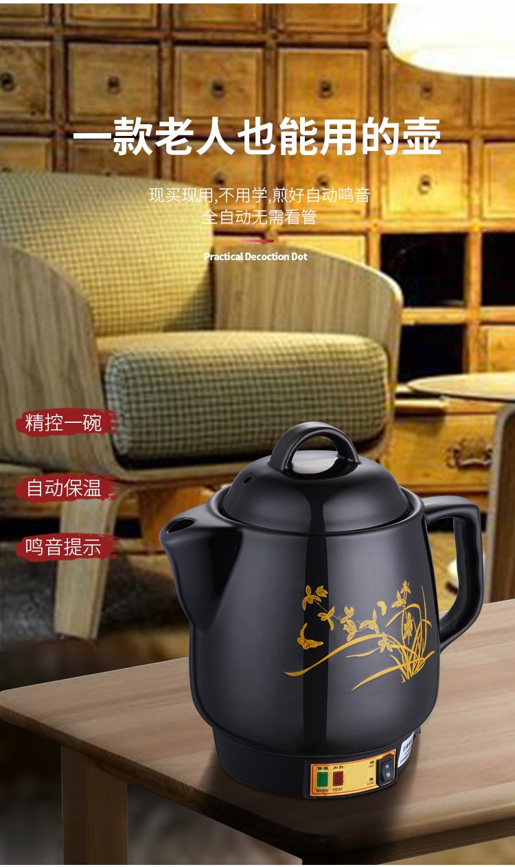 航方中药锅煎药壶中药壶全自动分体式养生壶陶瓷药罐熬药电砂锅家用煮炖药锅中药煲 7壶A印花(NFL)+黑底座