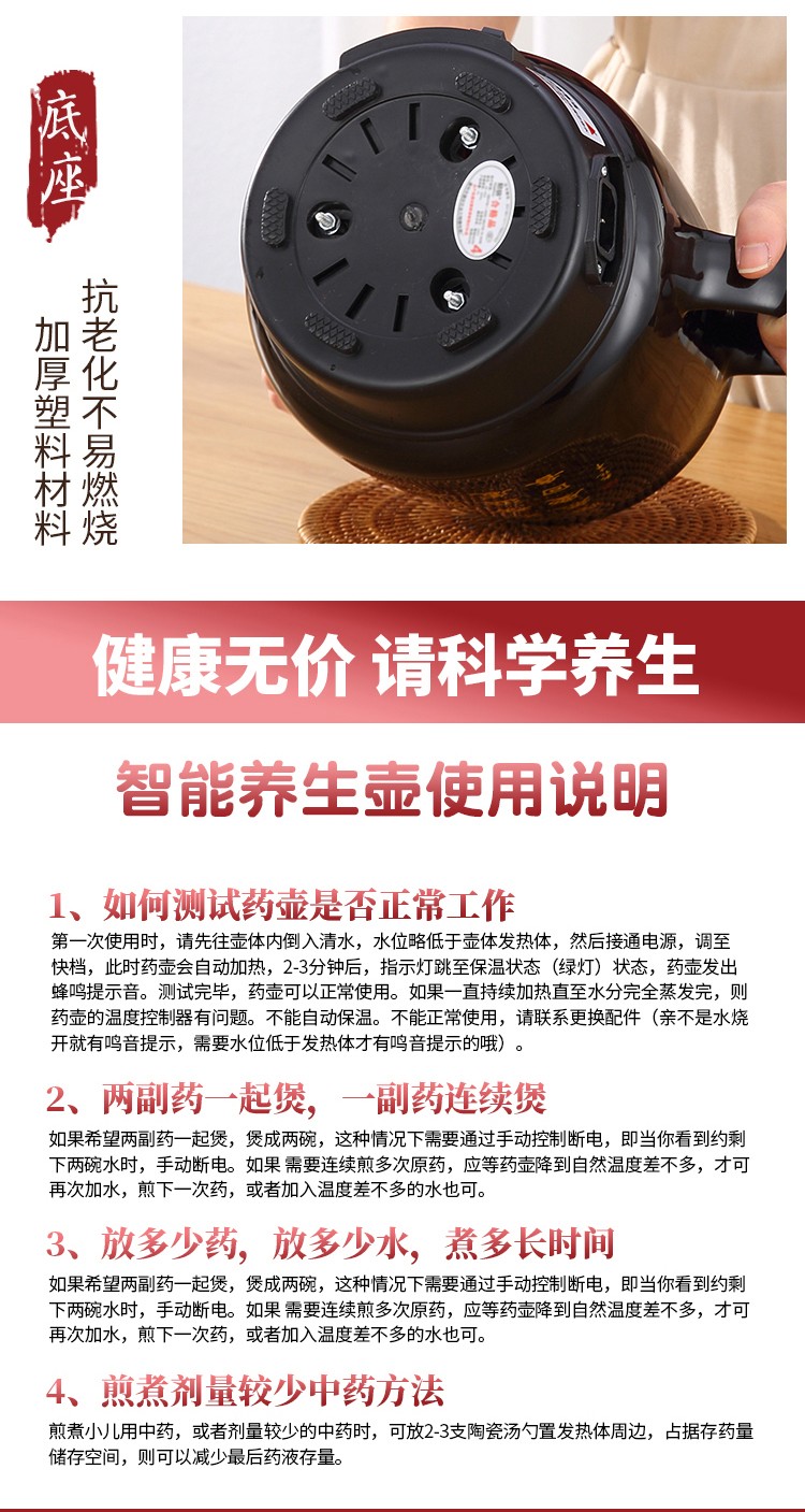 煎药砂锅煎药壶中药壶熬药罐陶瓷电砂锅炖药锅电子煎药煲煎药机器家用便捷熬药分体智能中医壶 5.5A壶+红底座【300-400g药材【配赠品】