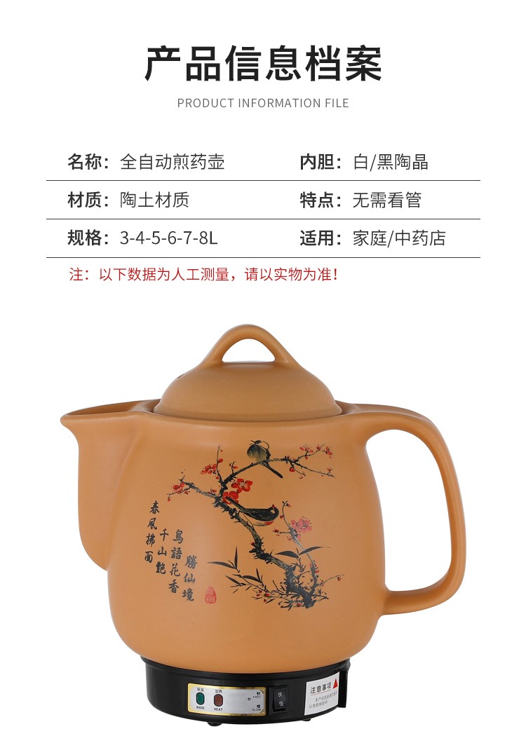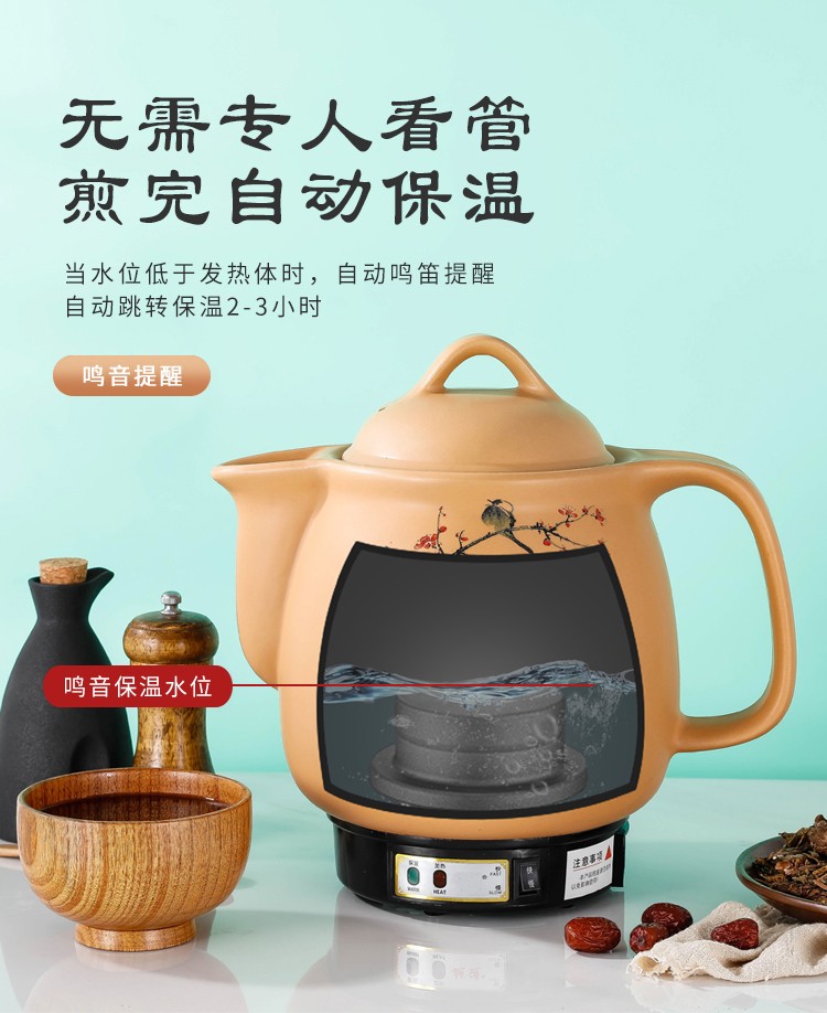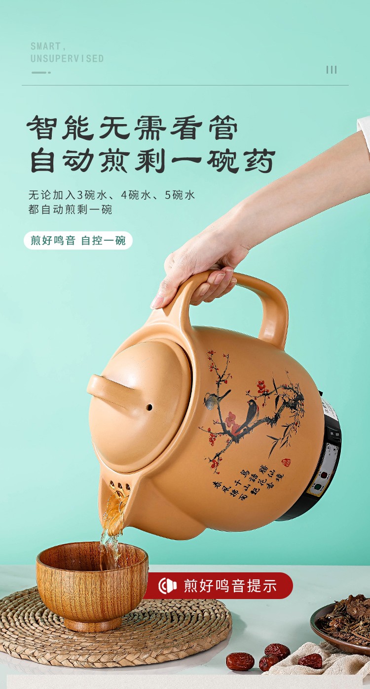 奇家中药煲全自动熬药锅砂锅煎中医壶电煮中药锅药罐煎药壶电药壶一体 陶瓷壶坏白陶晶内胆全自动煎药 3L全自动(黑陶不粘)+鸣音提示