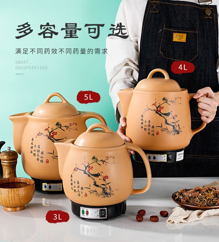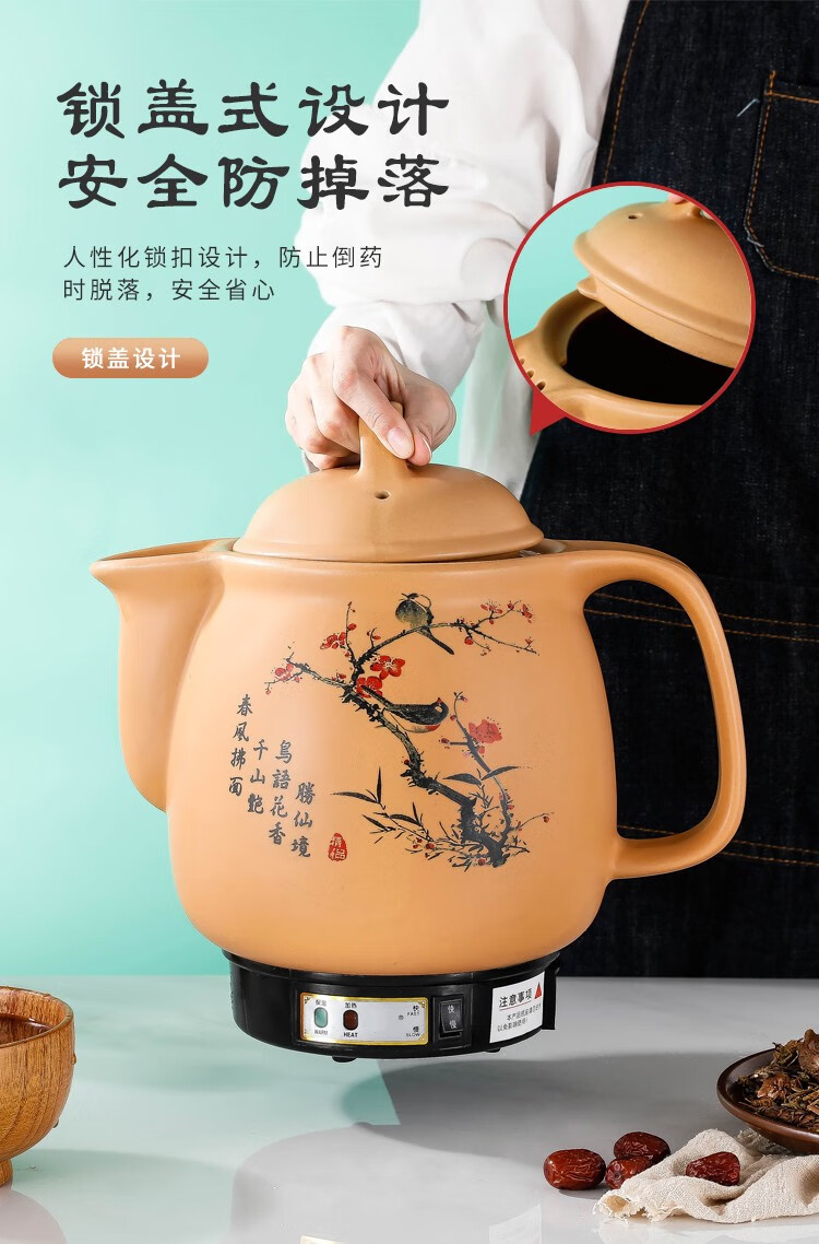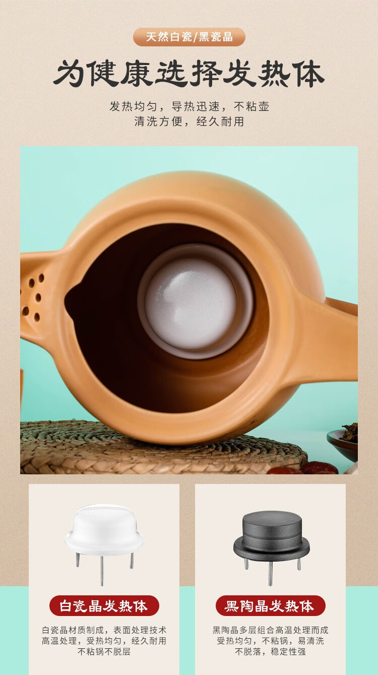 奇家家用煎药壶养生壶中药壶电熬药壶全自动陶瓷电砂锅熬药电药锅中药煲陶瓷药罐防爆裂多功能熬煮炖药壶 3L白陶晶加热体