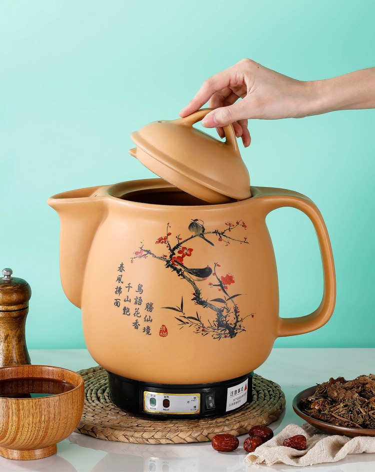 煎药砂锅煎药壶中药壶熬药罐陶瓷电砂锅炖药锅电子煎药煲煎药机器家用便捷熬药分体智能中医壶 5.5A壶+红底座【300-400g药材【配赠品】