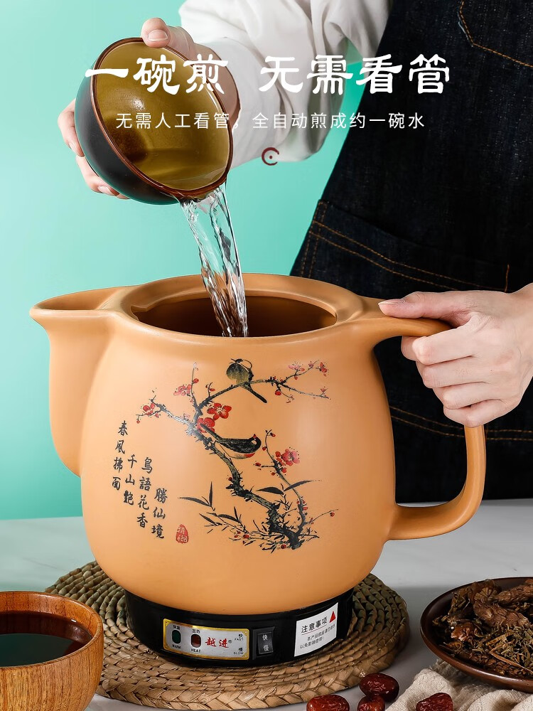 全自动中药壶煎药壶家用药罐插电煎中医砂锅熬药神器电药煲机煮锅嘉艾亿 黄色3L【黑晶】不粘锅+自动保温+鸣音