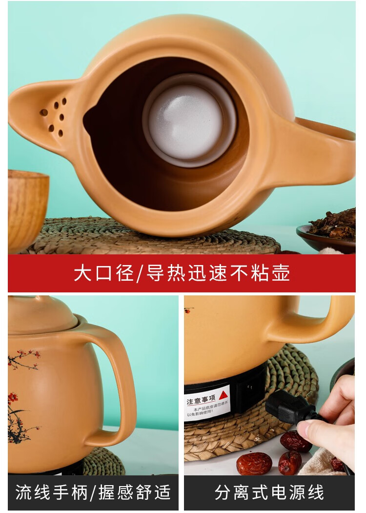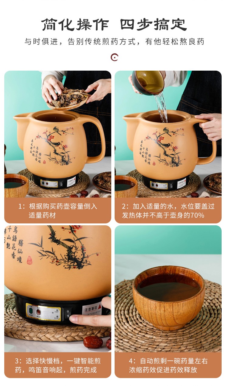 航方分体式紫砂中药锅煎药壶中药壶养生壶全自动电药煲无釉锅熬药罐机子 4.5壶A(ZSH-CZ)+赤底座A【店长推荐】