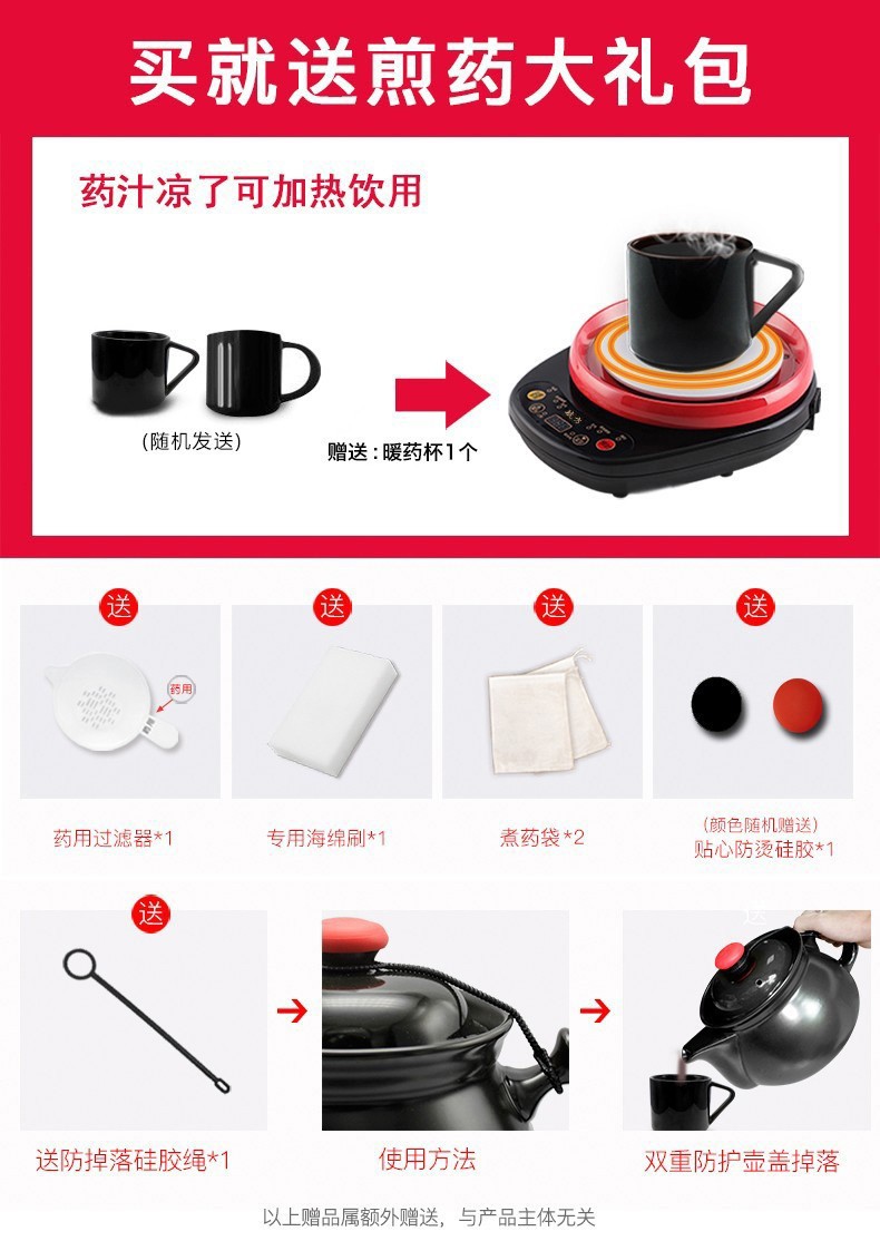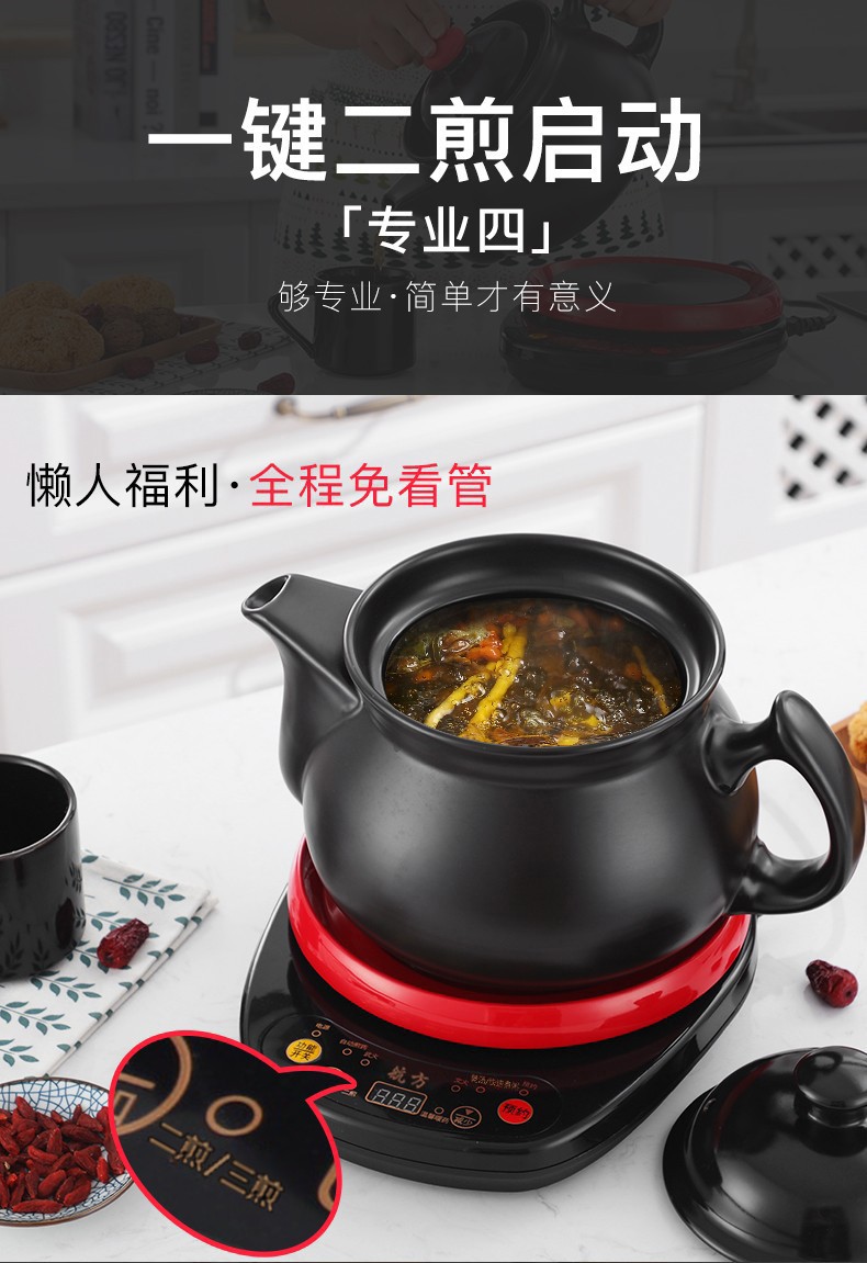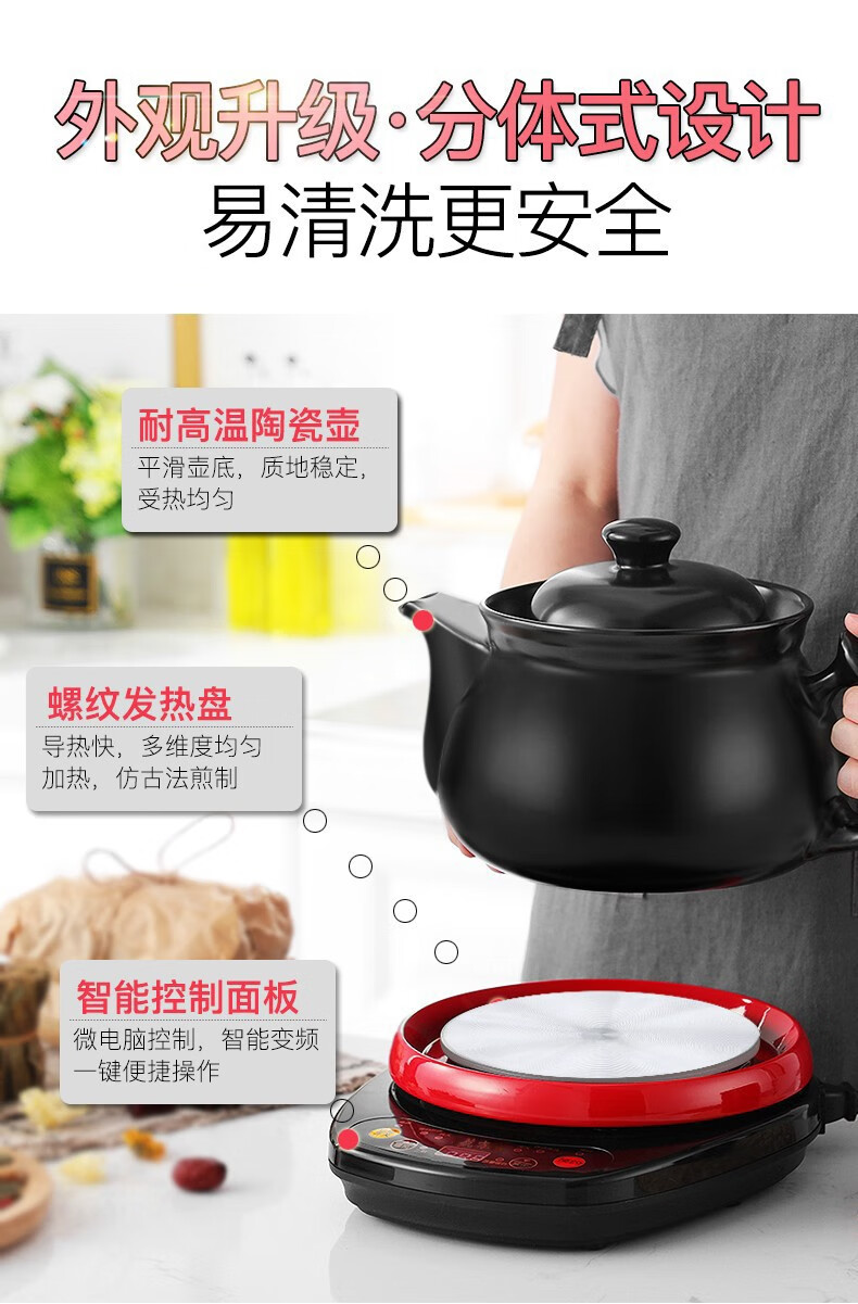 煎药砂锅煎药壶中药壶熬药罐陶瓷电砂锅炖药锅电子煎药煲煎药机器家用便捷熬药分体智能中医壶 5.5A壶+红底座【300-400g药材【配赠品】