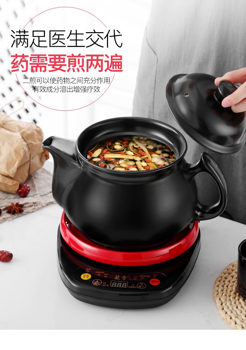 航方养生壶中药锅煎药壶分体式中药壶中药煲熬药砂锅全自动陶瓷砂锅煎药机智能电子炖药罐熬中医器家用 4黑壶G+黑白底座B【店长推荐】