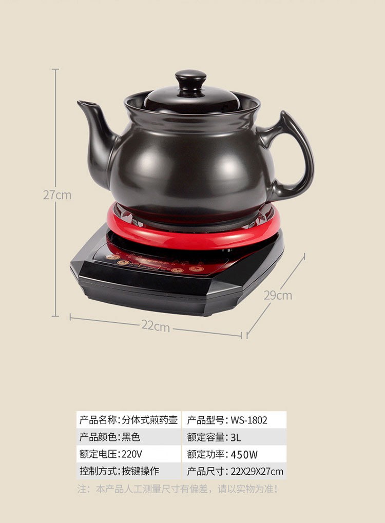 华生(washon)煎药壶分体式中药壶养生壶全自动煎药机熬药陶瓷砂锅电子煮炖药锅电药煲机熬中药器 3L煎药+底座