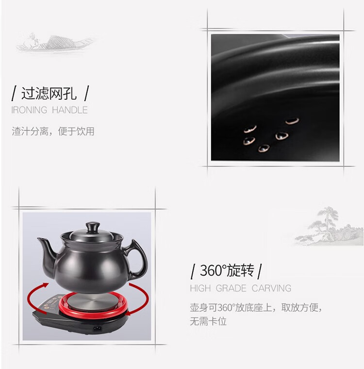 奇家中药煲全自动熬药锅砂锅煎中医壶电煮中药锅药罐煎药壶电药壶一体 陶瓷壶坏白陶晶内胆全自动煎药 3L全自动(黑陶不粘)+鸣音提示