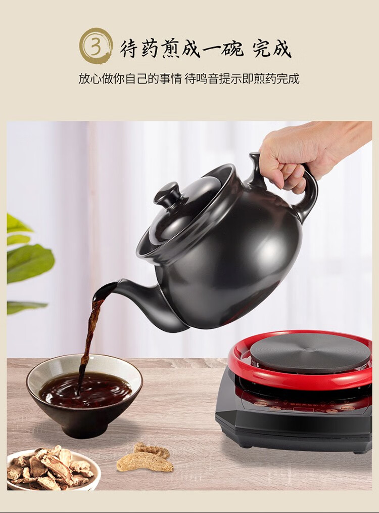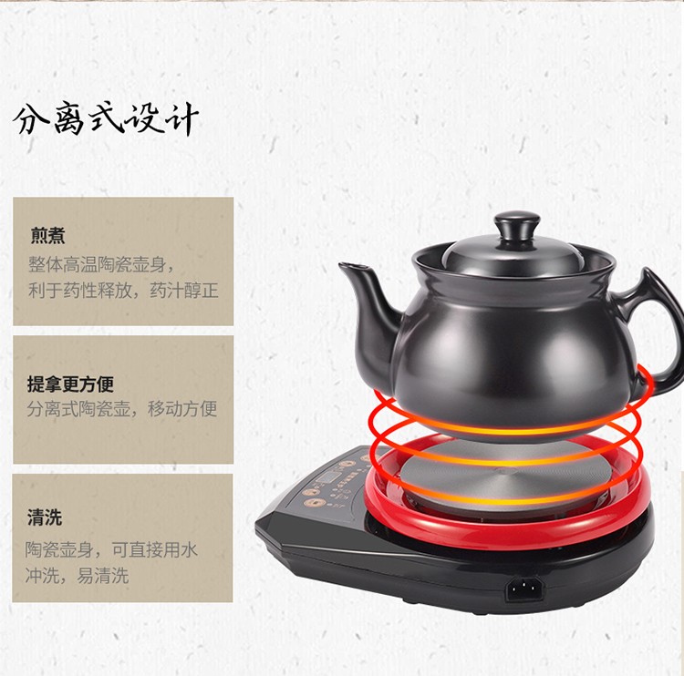 煎药砂锅煎药壶中药壶熬药罐陶瓷电砂锅炖药锅电子煎药煲煎药机器家用便捷熬药分体智能中医壶 5.5A壶+红底座【300-400g药材【配赠品】
