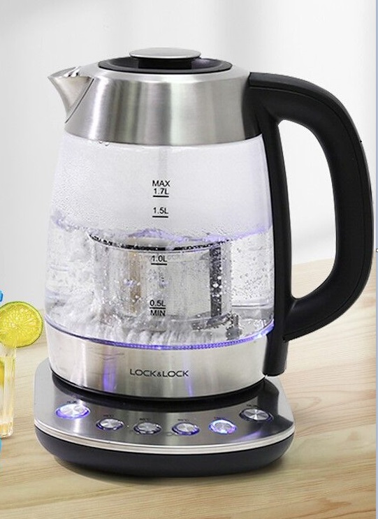 乐扣乐扣(LOCK&LOCK)电热水壶玻璃养生壶 煮茶器 1.7L大容量内带滤网EJK433BLK