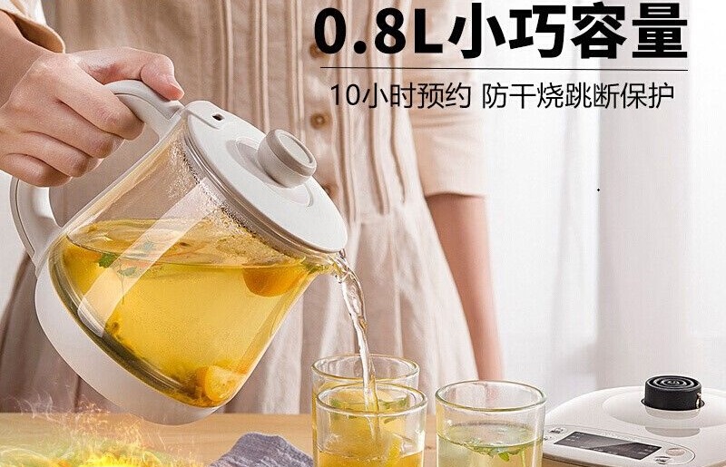 小熊(Bear) 养生壶 0.8升多功能高硼硅加厚玻璃电热水壶煮茶壶煮茶器 YSH-A08U6